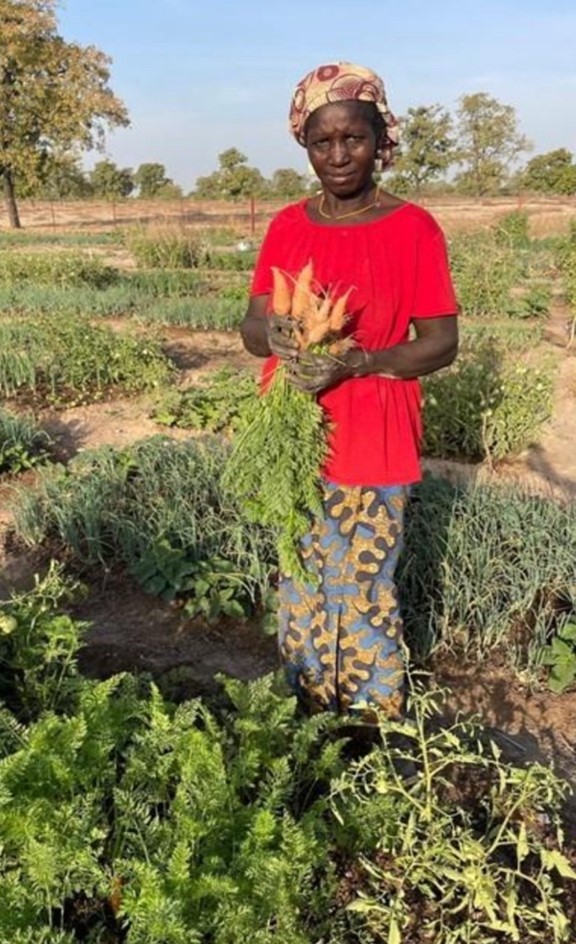 Mariam Togola, de la aldea de Zantièla, recoge las zanahorias cultivadas en su parcela.