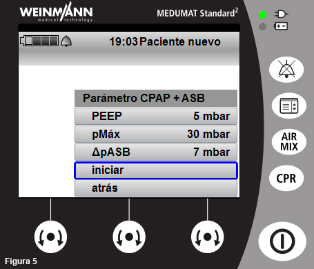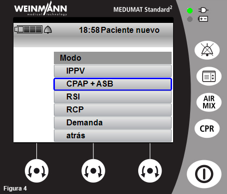 - Seleccione CPAP + ASB en el listado de modos (fig. 4).