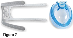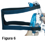 - Fije la interfase con el sistema de arnés. Puede ser un sistema textil con velcro (fig. 6) o un sistema elástico multiperforado para ajustar en el aro de la máscara (fig. 7).