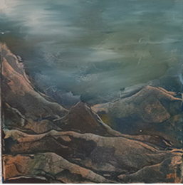 Su obra nos transporta por un mundo onírico, lleno de paisajes que parecen brotar de sueños oscuros y evocadores donde el color nos busca para hacernos parte de ese sueño.
