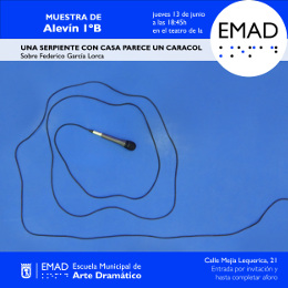 El martes 11 y el jueves 13 de junio de 2019 los dos grupos más pequeños de la EMAD, 1º A y 1º B del nivel Alevín nos mostraron 'Una serpiente con casa parece un caracol', trabajo grupal sobre Federico García Lorca.