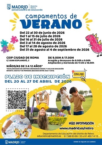 Campamento urbano de verano 2026 ofertado por el distrito de Retiro y prestado por la empresa Siete Estrellas Educación y Ocio, S.L.U.