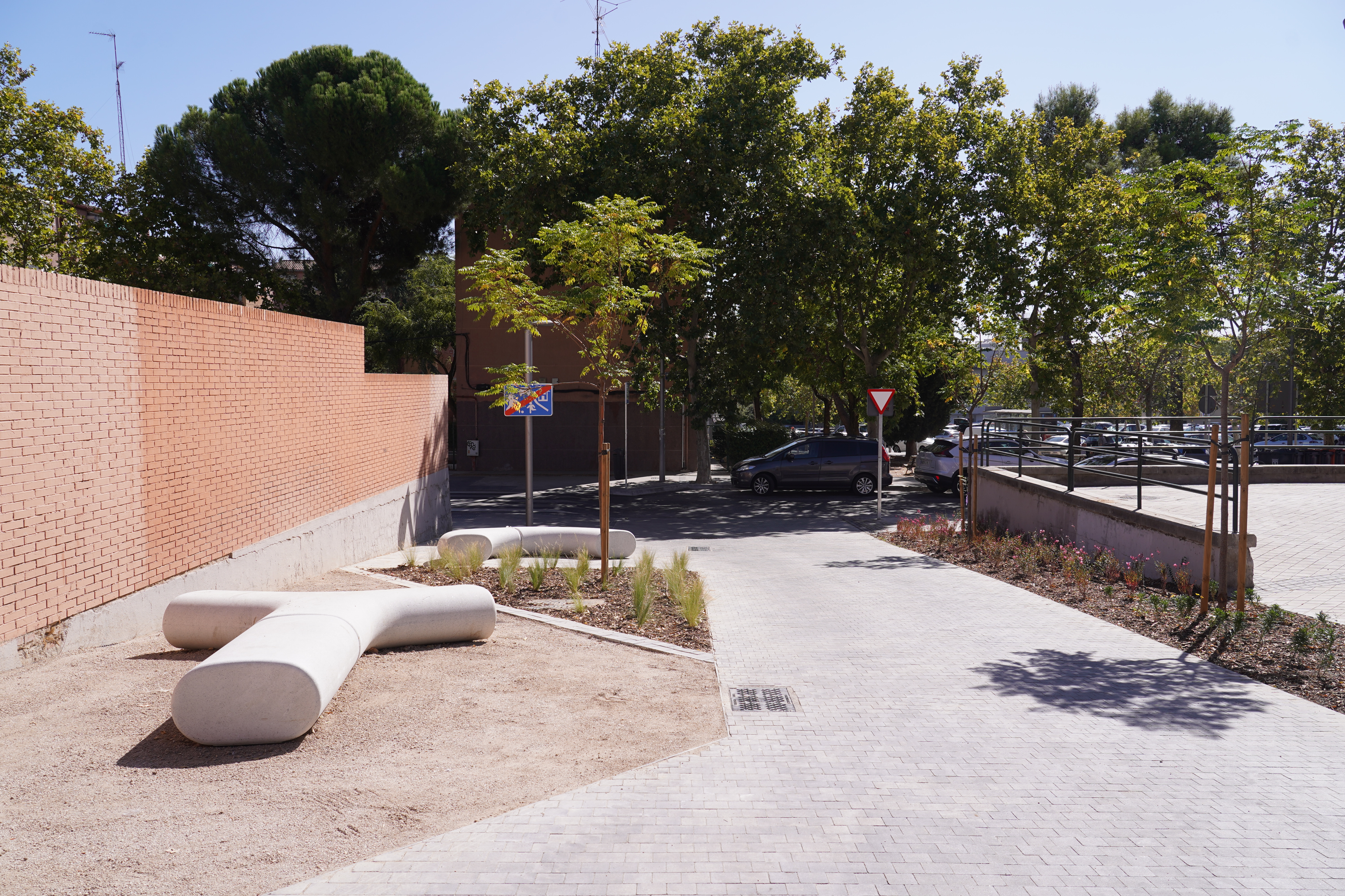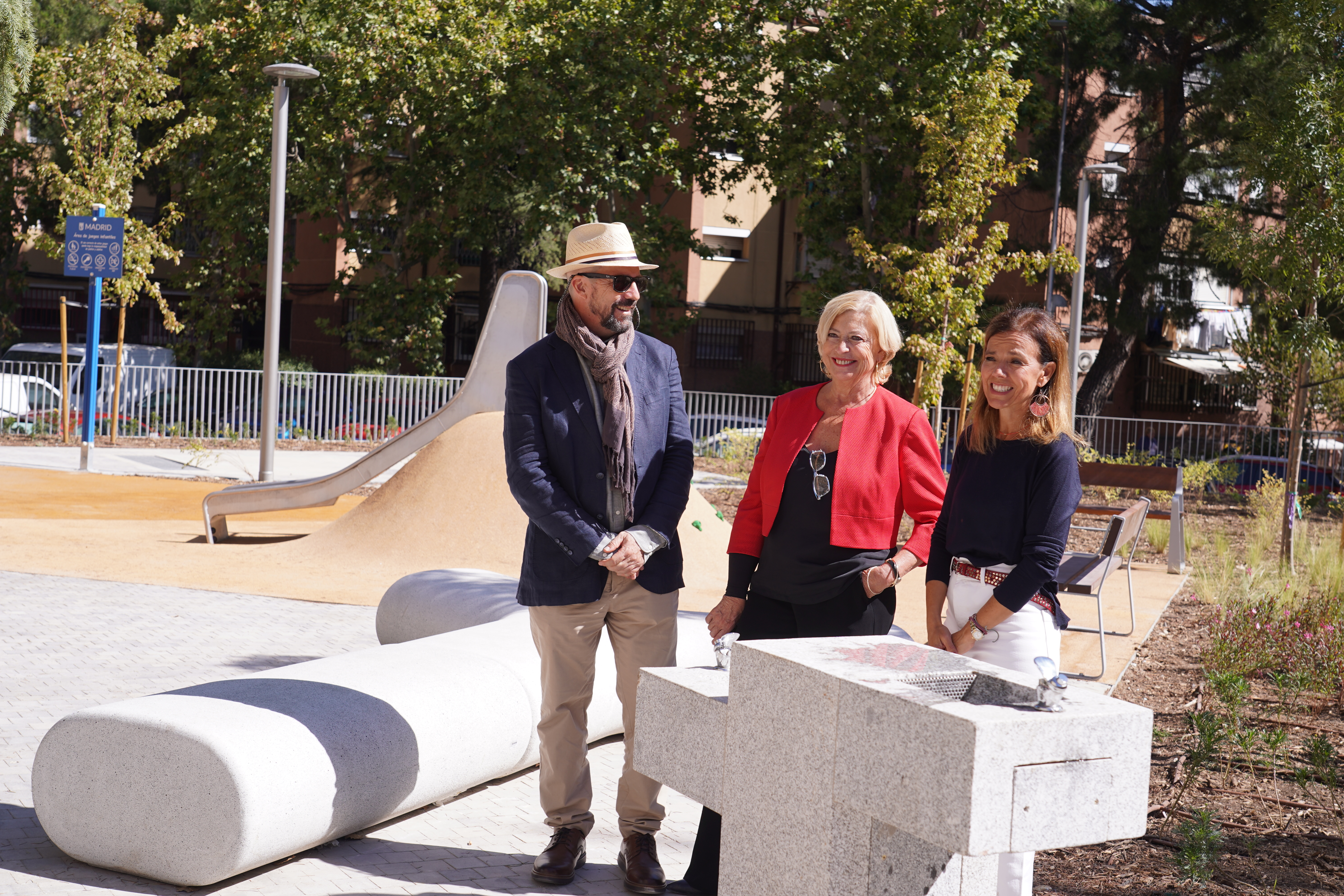 La remodelación también ha incluido la instalación de nuevo mobiliario urbano compuesto por bancos y una fuente accesible de granito. A ello se suman elementos infantiles como un tobogán y una cama elástica. Por su parte, desde el punto de vista ambiental, se han plantado 35 nuevos árboles.
