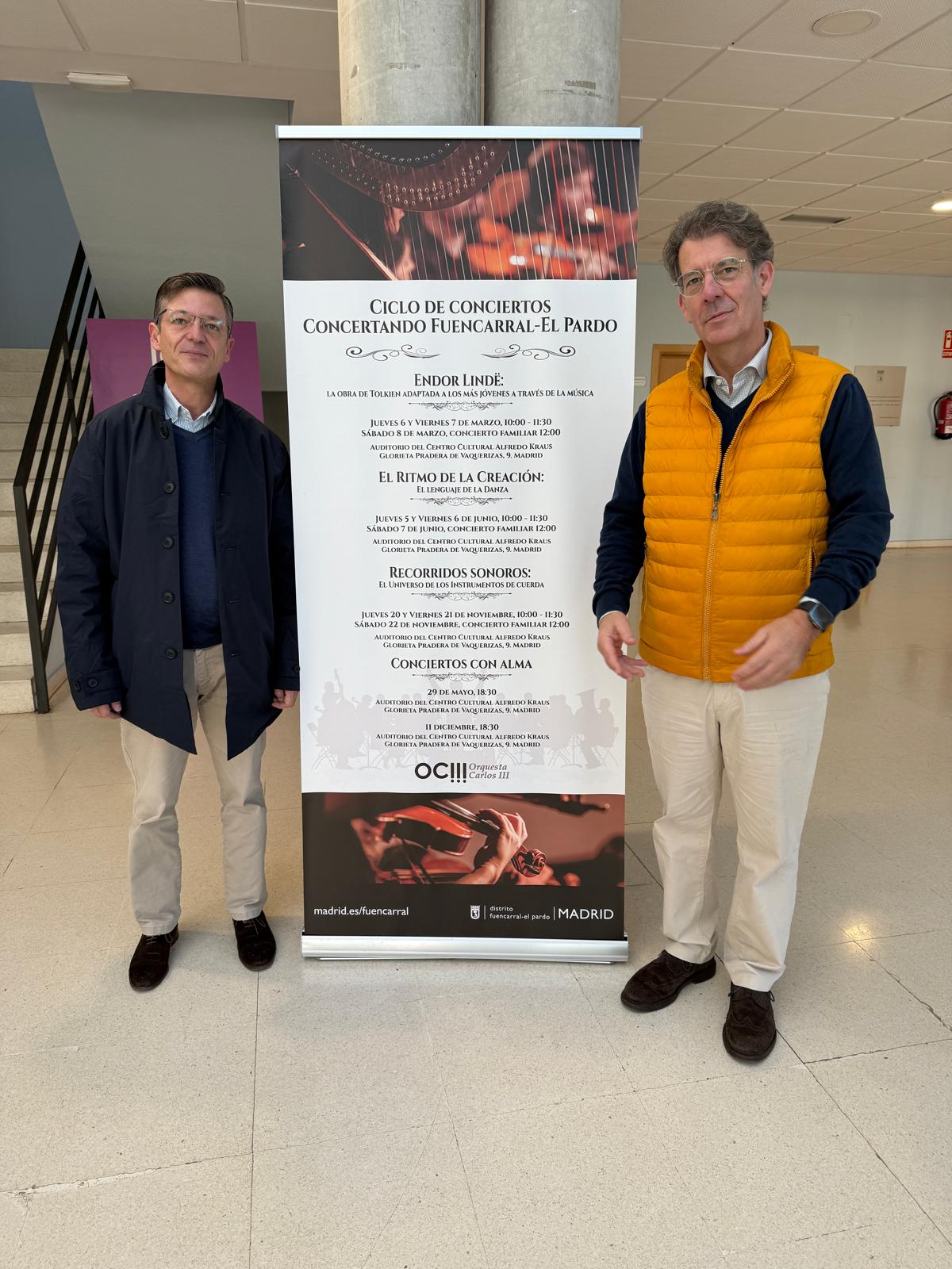 La Junta Municipal de Fuencarral-El Pardo ha organizado esta mañana el concierto familiar Recorridos sonoros, el universo de los instrumentos de cuerda como parte del convenio con la Asociación Filarmónica Orquesta de Cámara Carlos III. La actuación, dirigida por Juan Manuel Alonso, ha tenido lugar en el Centro Cultural Alfredo Kraus, en presencia del concejal del distrito, José Antonio Martínez Páramo.
