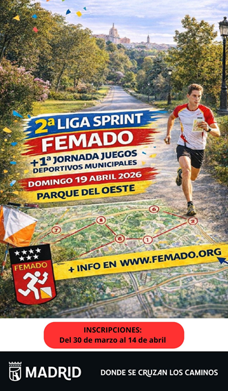 Liga Sprint de la Federación Madrileña de Orientación. 1ª Jornada de Juegos Deportivos Municipales 2026Domingo 19 de abril de 2026