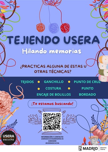 Usera es un distrito rico en culturas, historias y expresiones populares. A través del tejido —presente en prácticamente todas las culturas del mundo— queremos construir redes entre iniciativas ya existentes y fortalecer el tejido social del distrito.