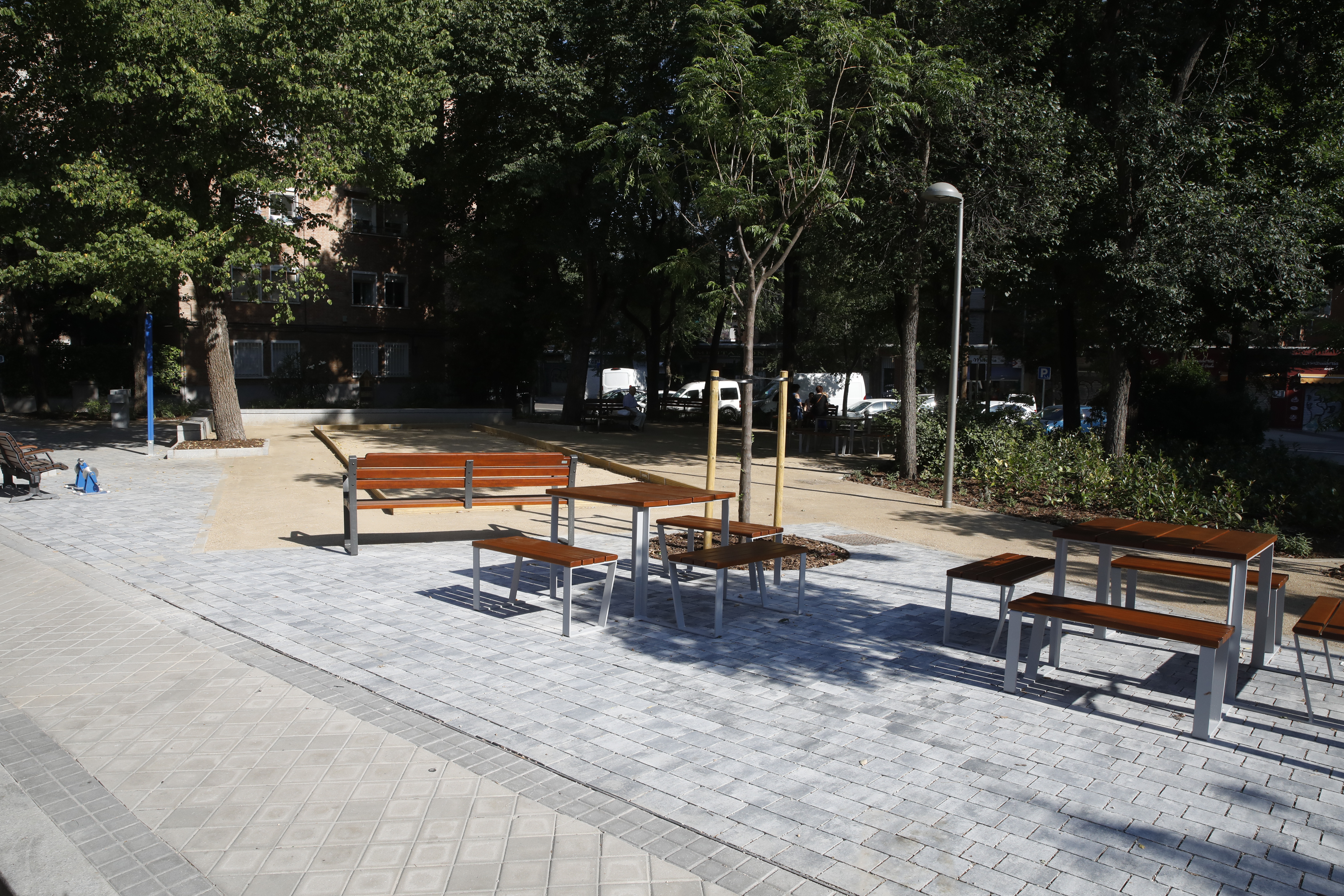 En la plaza pavimentada entre las calles de Marcelo Usera, Manuel Noya y San Filiberto, recientemente reformada, se ha incorporado nuevo mobiliario lúdico como mesas de juego y de tenis de mesa, así como un acceso accesible desde la calle de Marcelo Usera. Las zonas verdes de la plaza se han reforzado con nuevas especies arbóreas y arbustivas. /