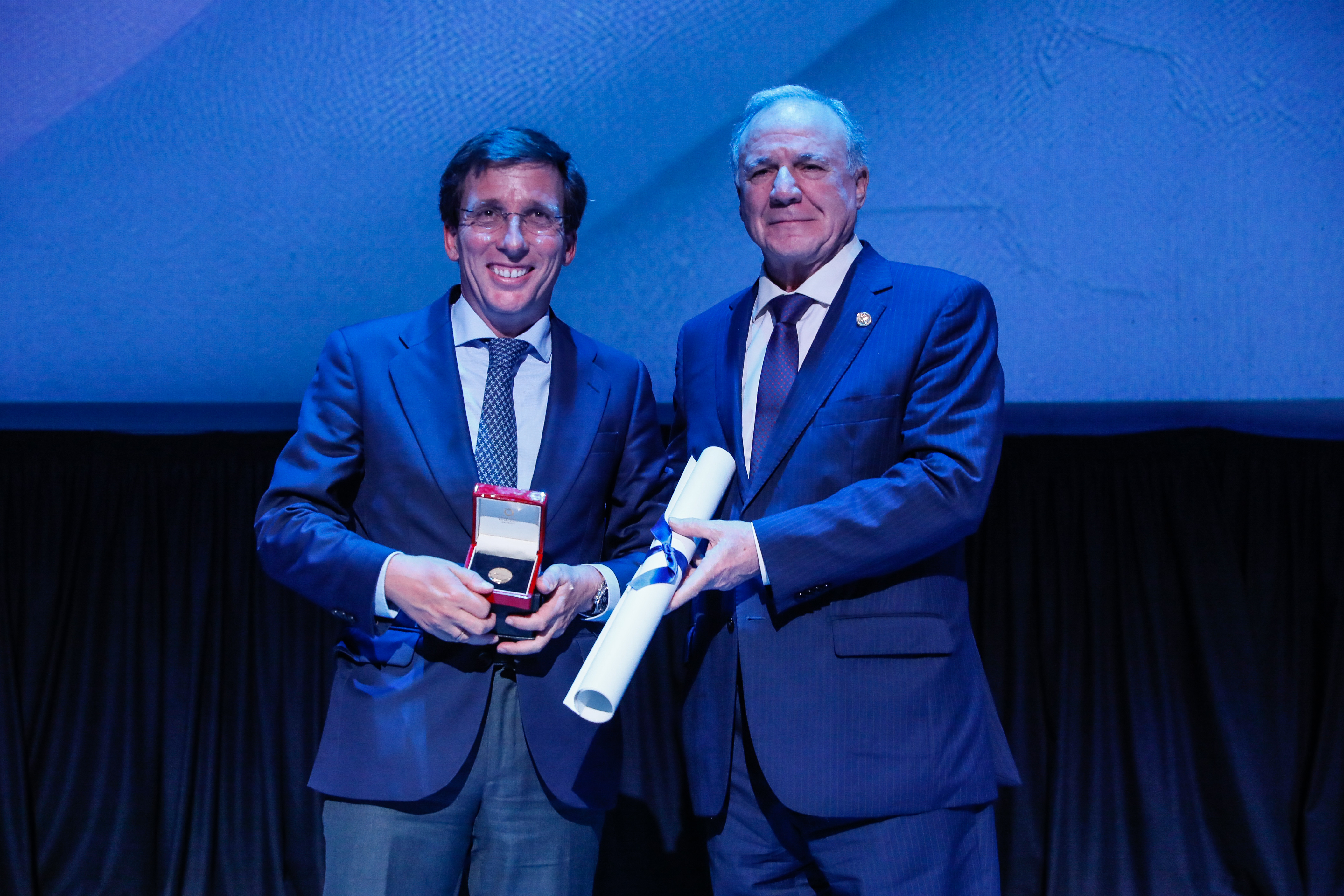El alcalde de Madrid, José Luis Martínez-Almeida, ha recibido hoy la medalla de Oro al Mérito Personal de la Asociación Española de la Carretera, un galardón que, según ha explicado, “no puedo aceptar a título personal, sino a título profesional” ya que “todo lo que hayamos podido conseguir se debe al extraordinario equipo que tenemos en el Ayuntamiento de Madrid” y a la acción política desarrollada por el Consistorio, lo que ha llevado a Madrid a la buena situación que tiene en la actualidad y a “estar preparados para acometer el futuro dotándonos de las mejores infraestructuras”.