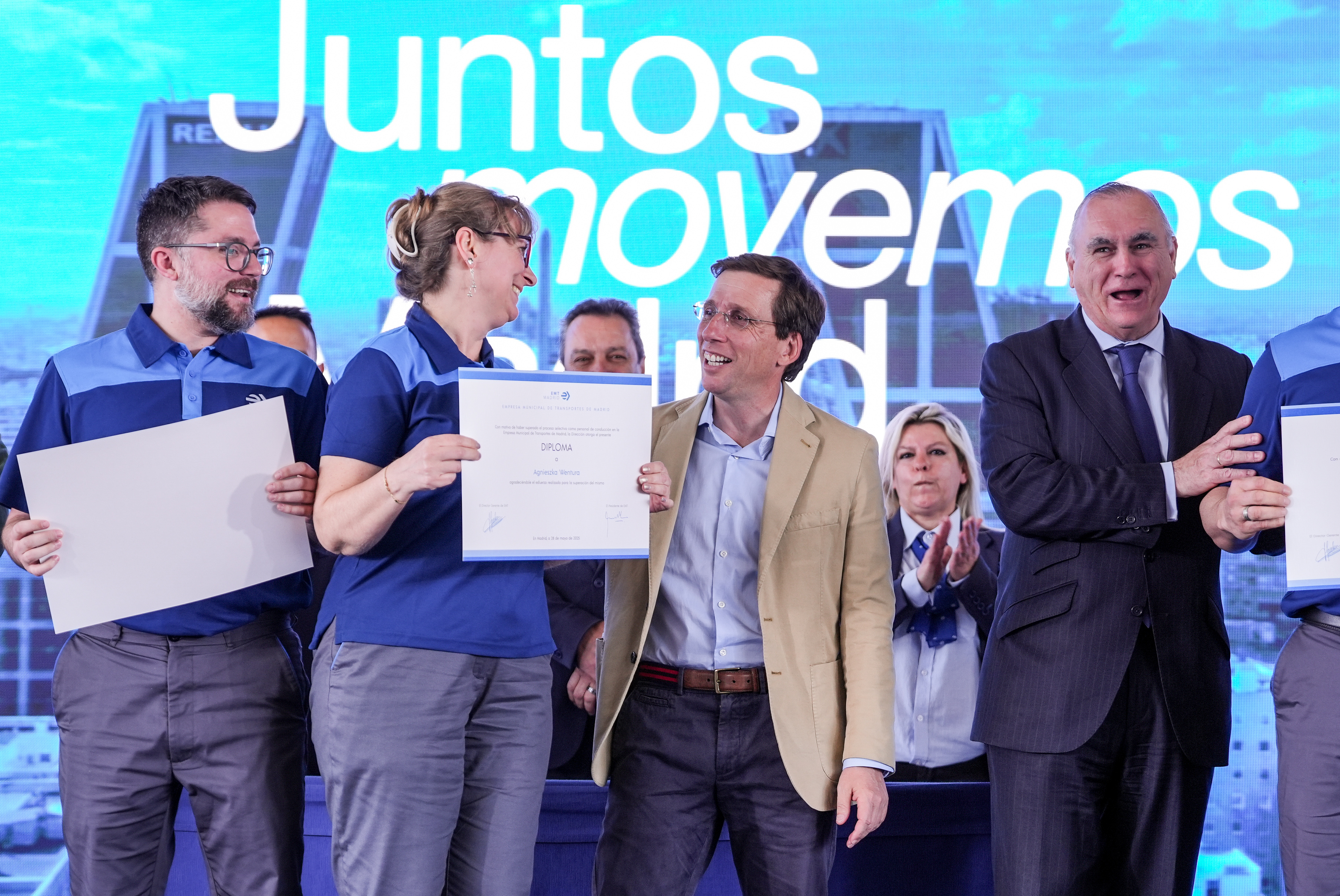 El alcalde de Madrid, José Luis Martínez-Almeida, ha participado en el acto de clausura del curso de formación de 121 nuevos conductores de autobús que se ha celebrado hoy en el Centro de Operaciones de Sanchinarro. Tras darles la bienvenida a EMT Madrid, “una empresa pública y municipal que es un orgullo para la ciudad y para los madrileños”, Almeida ha destacado el servicio prestado por su personal el día 28 de abril, durante el apagón, en una ciudad sin semáforos ni comunicaciones. El alcalde también se ha referido a la vital importancia del transporte público sostenible en una ciudad como Madrid.