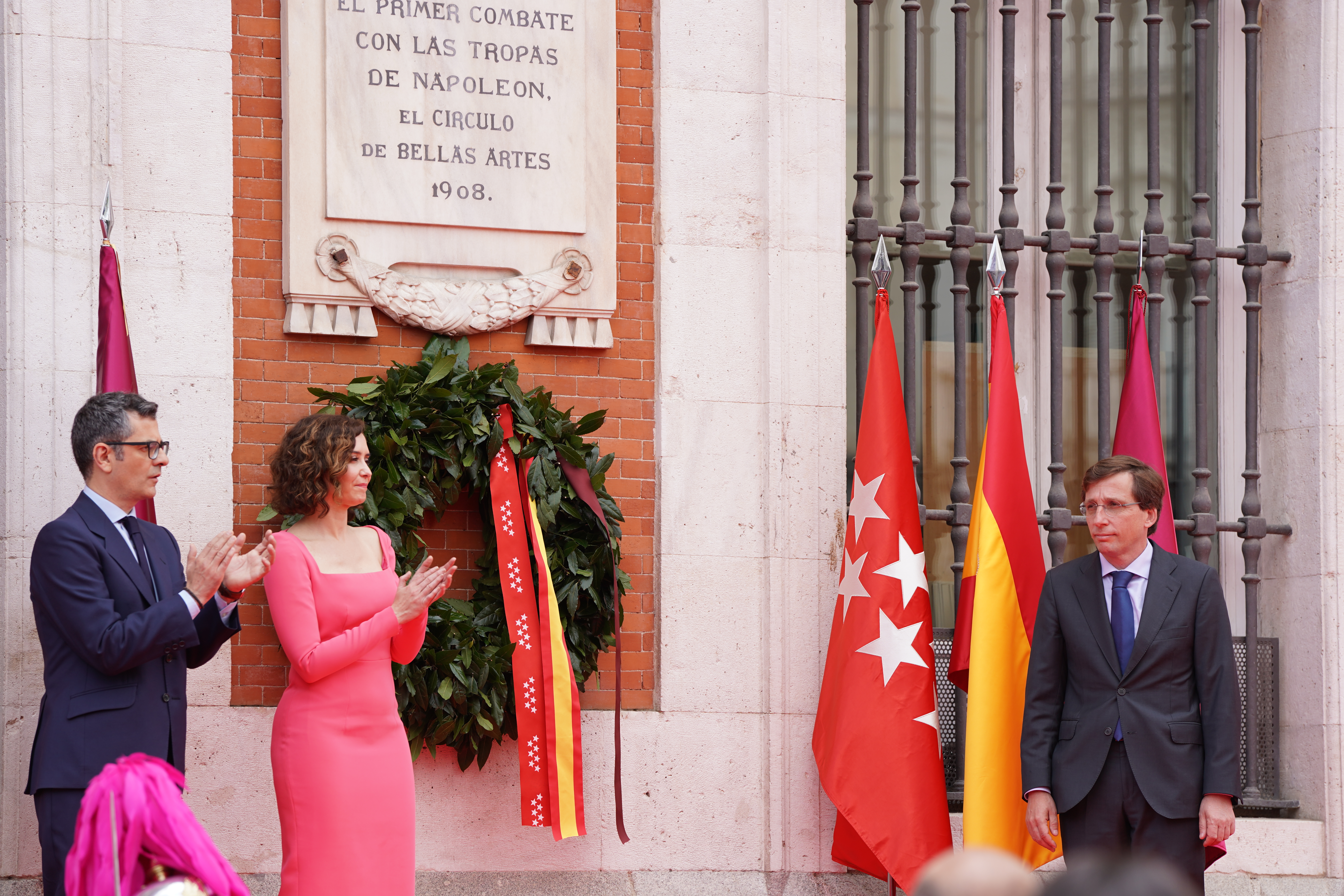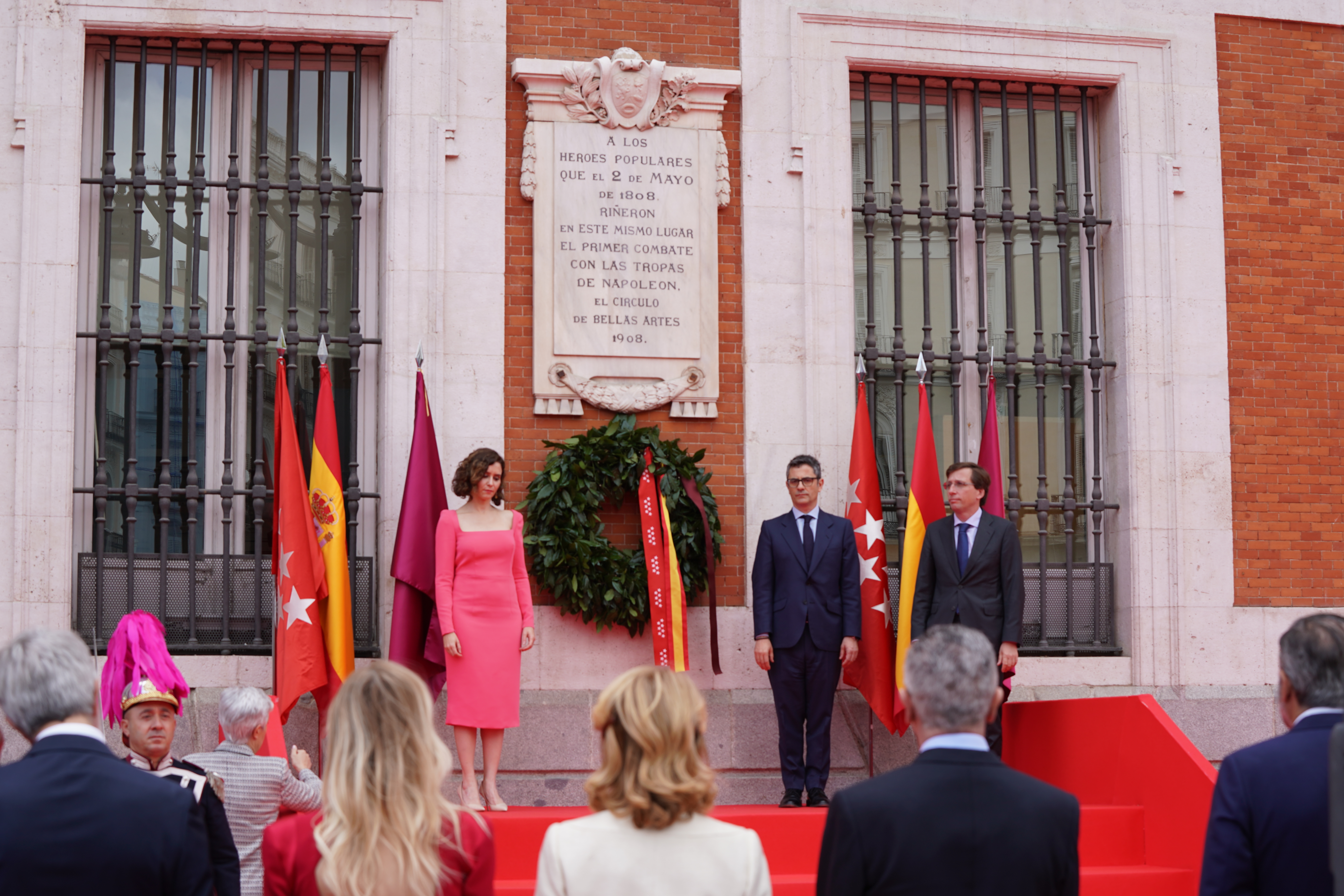 El alcalde de Madrid, José Luis Martínez-Almeida, ha participado este lunes en el homenaje a los Héroes del Dos de Mayo que ha tenido lugar en la Puerta del Sol, donde, junto a la presidenta de la Comunidad de Madrid, Isabel Díaz-Ayuso, y el ministro de la Presidencia, Relaciones con las Cortes y Memoria Democrática, Félix Bolaños, ha depositado una corona de laurel en la fachada de la Real Casa de Correos y ha rememorado “aquella epopeya que protagonizó el pueblo madrileño contra el ejército más poderoso de Europa, cuando salió a las calles a defender nuestra libertad, soberanía e independencia”.