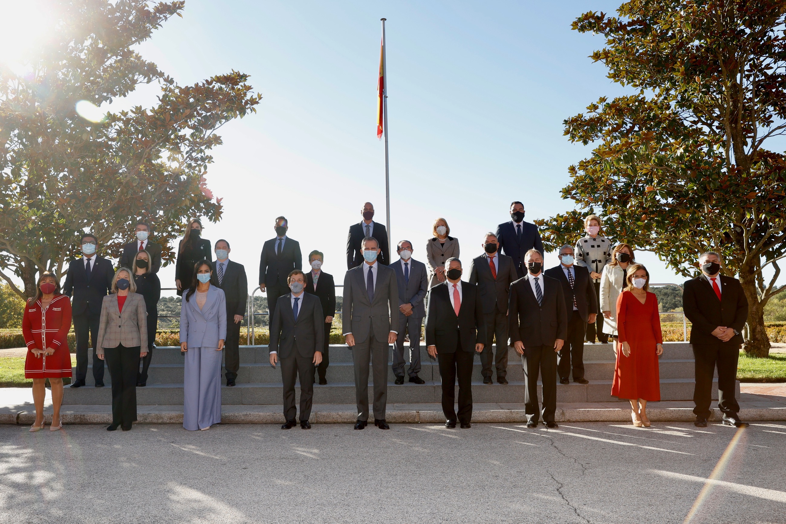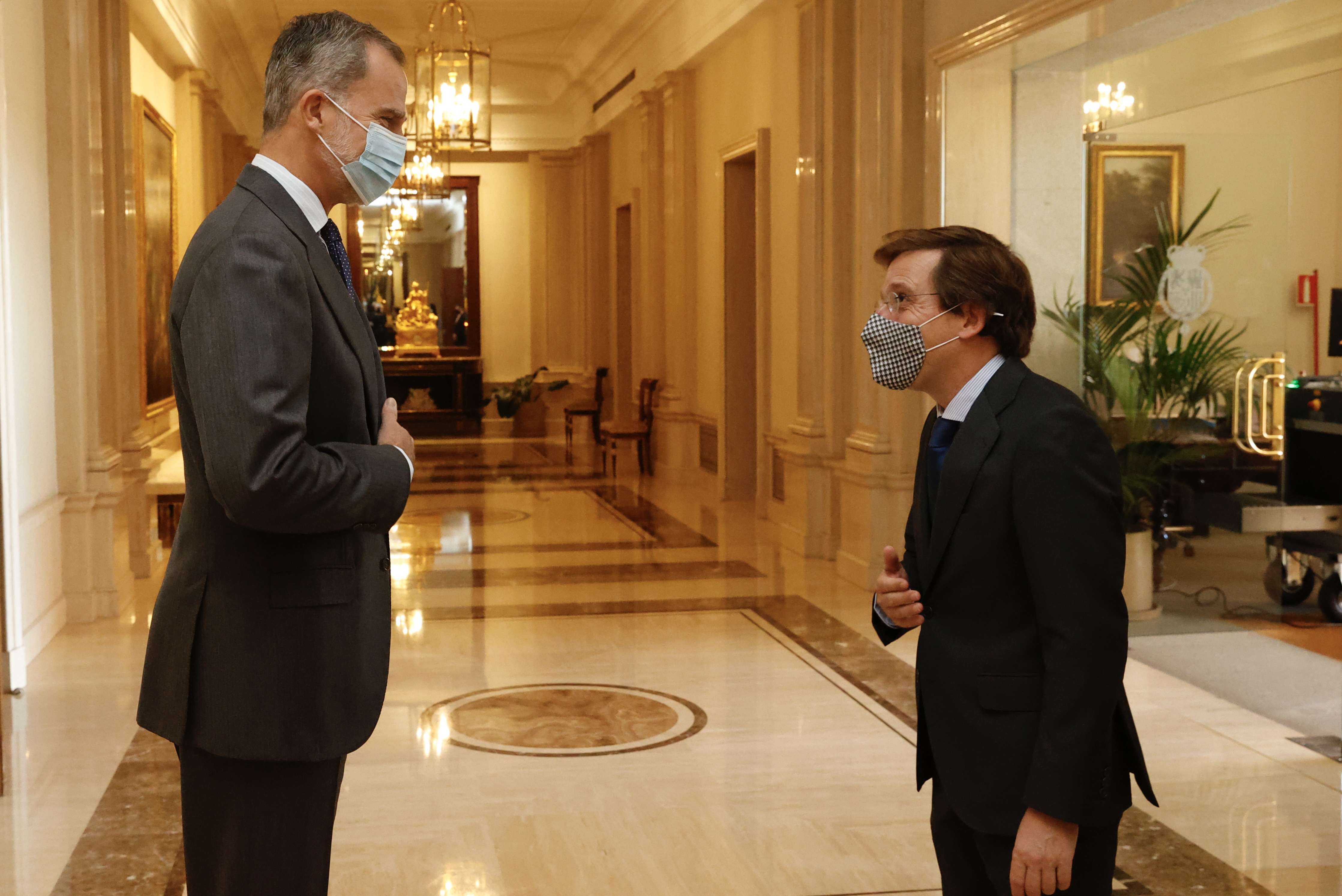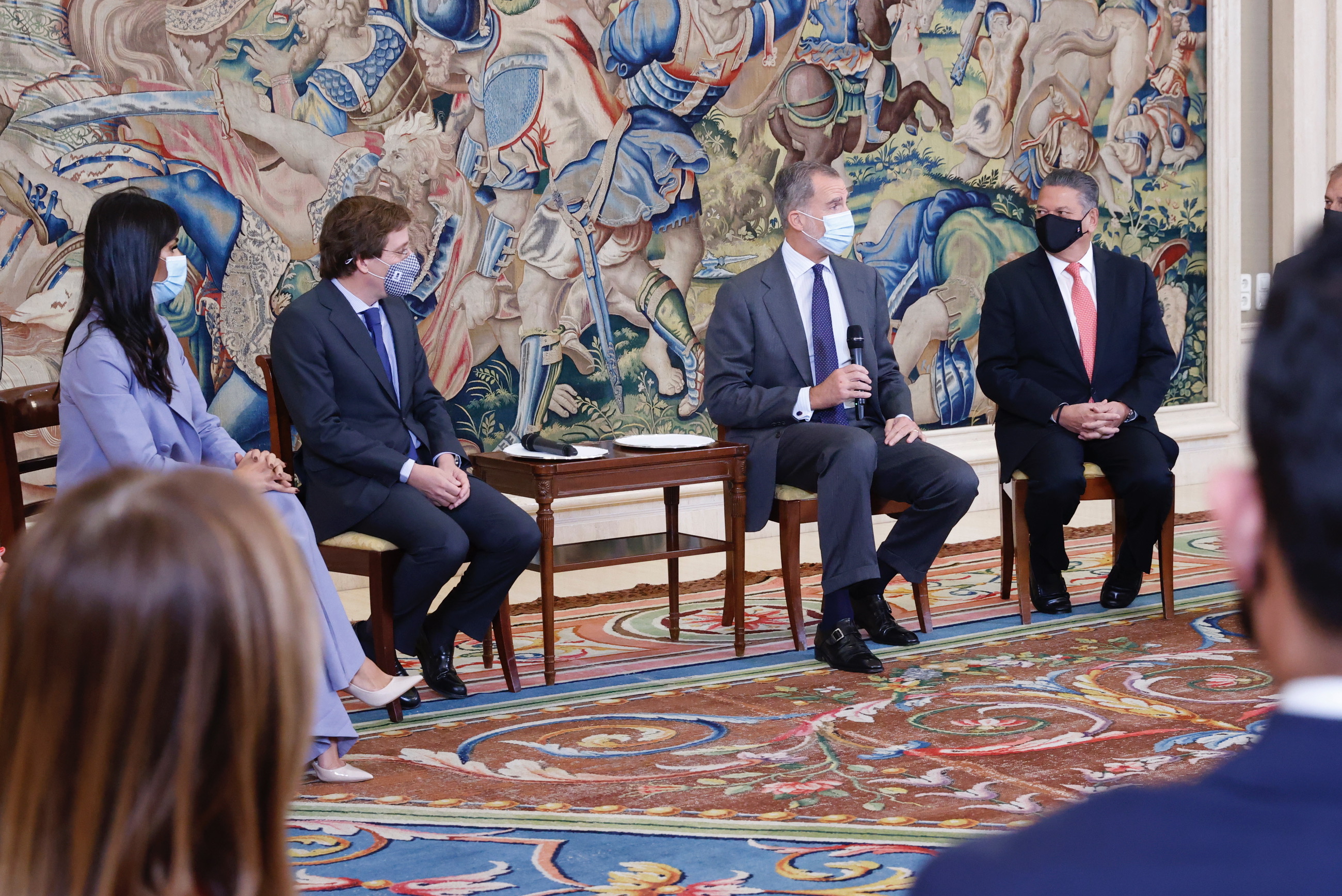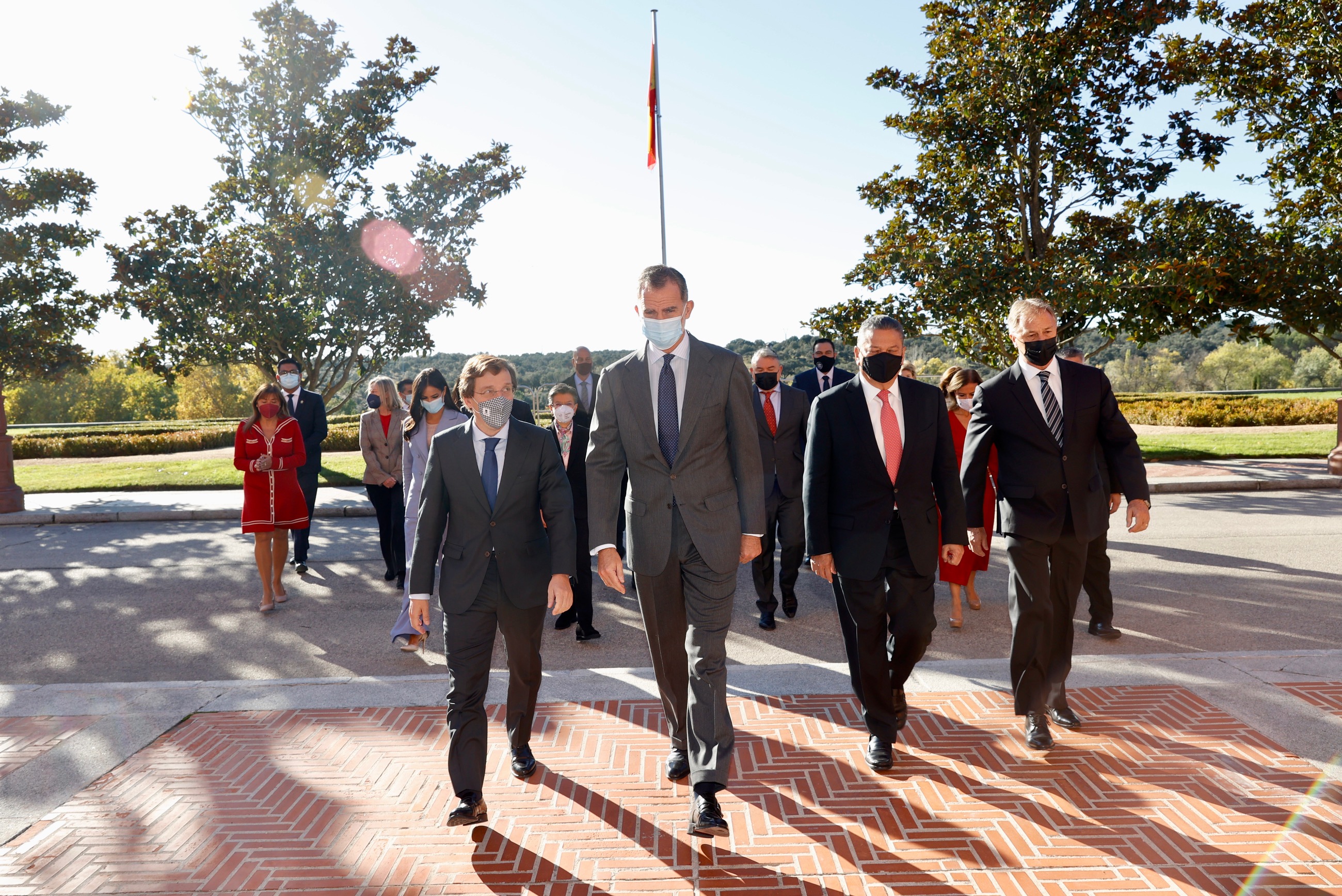 El alcalde de Madrid y copresidente de la Unión de Ciudades Capitales Iberoamericanas (UCCI), José Luis Martínez-Almeida; la vicealcaldesa, Begoña Villacís, y la secretaria general de la UCCI, Almudena Maíllo, han sido recibidos este viernes en audiencia por el rey Felipe VI en el Palacio de La Zarzuela junto con los miembros de la XIX Asamblea de la UCCI que se ha celebrado en Madrid.