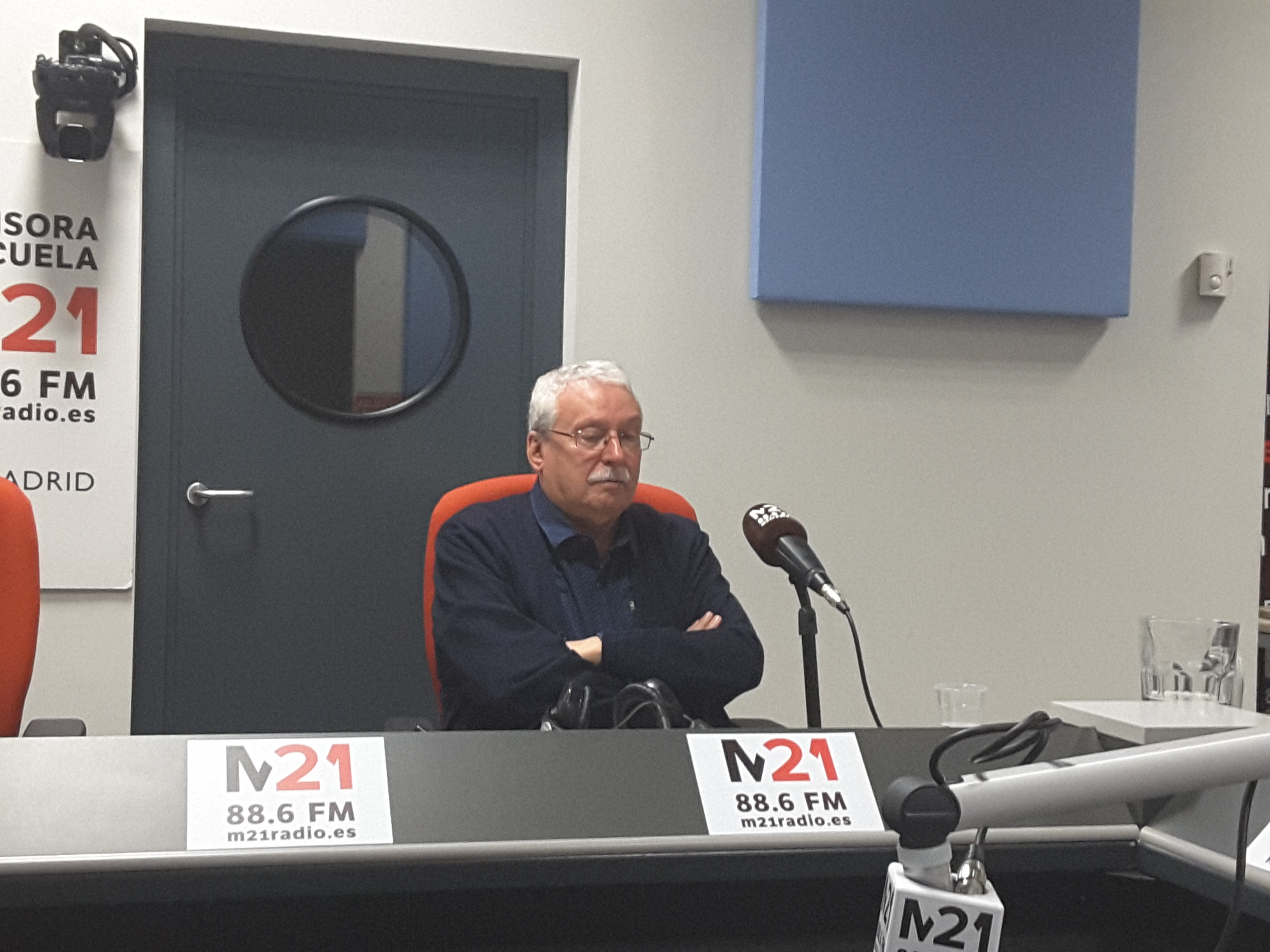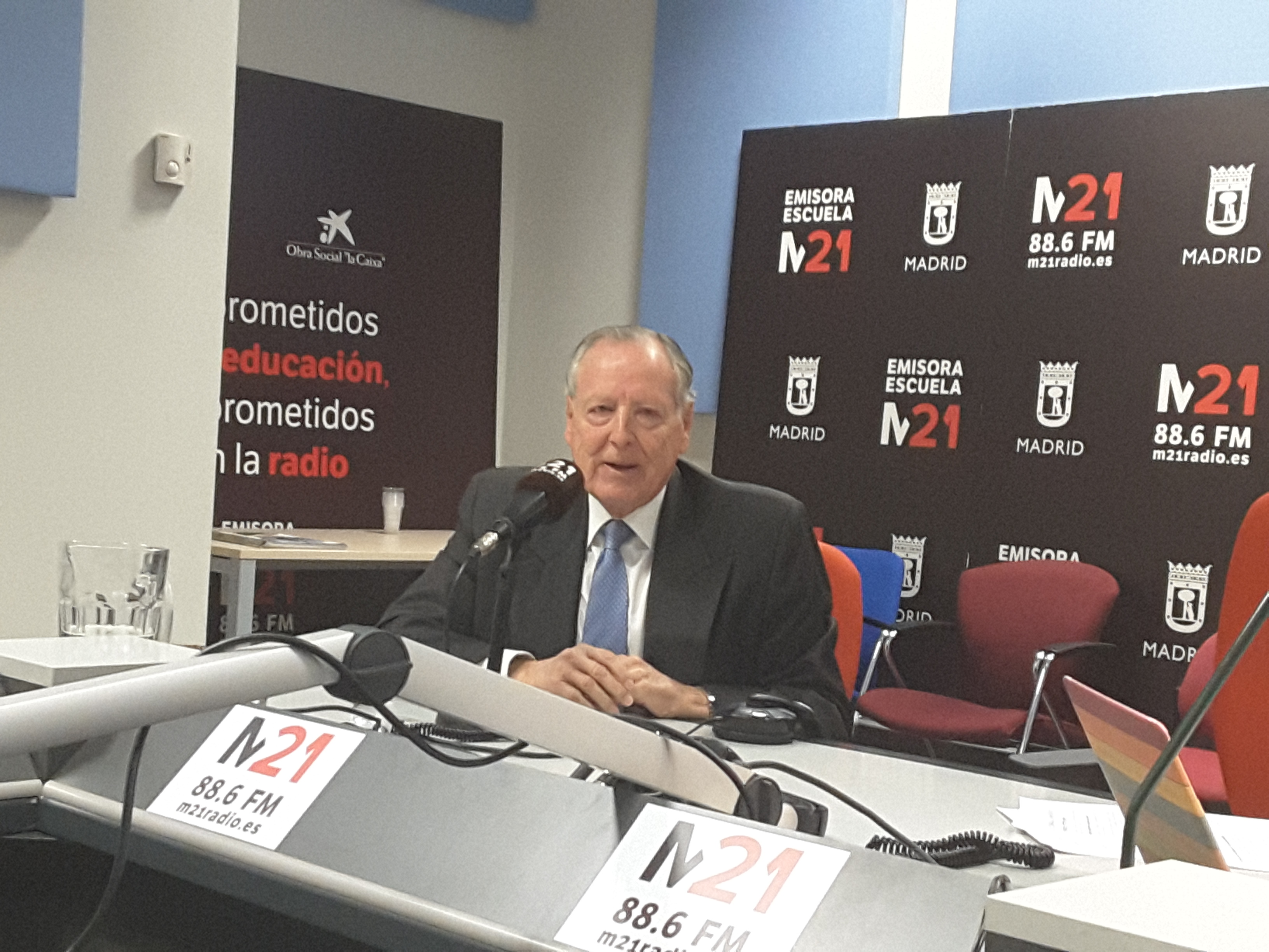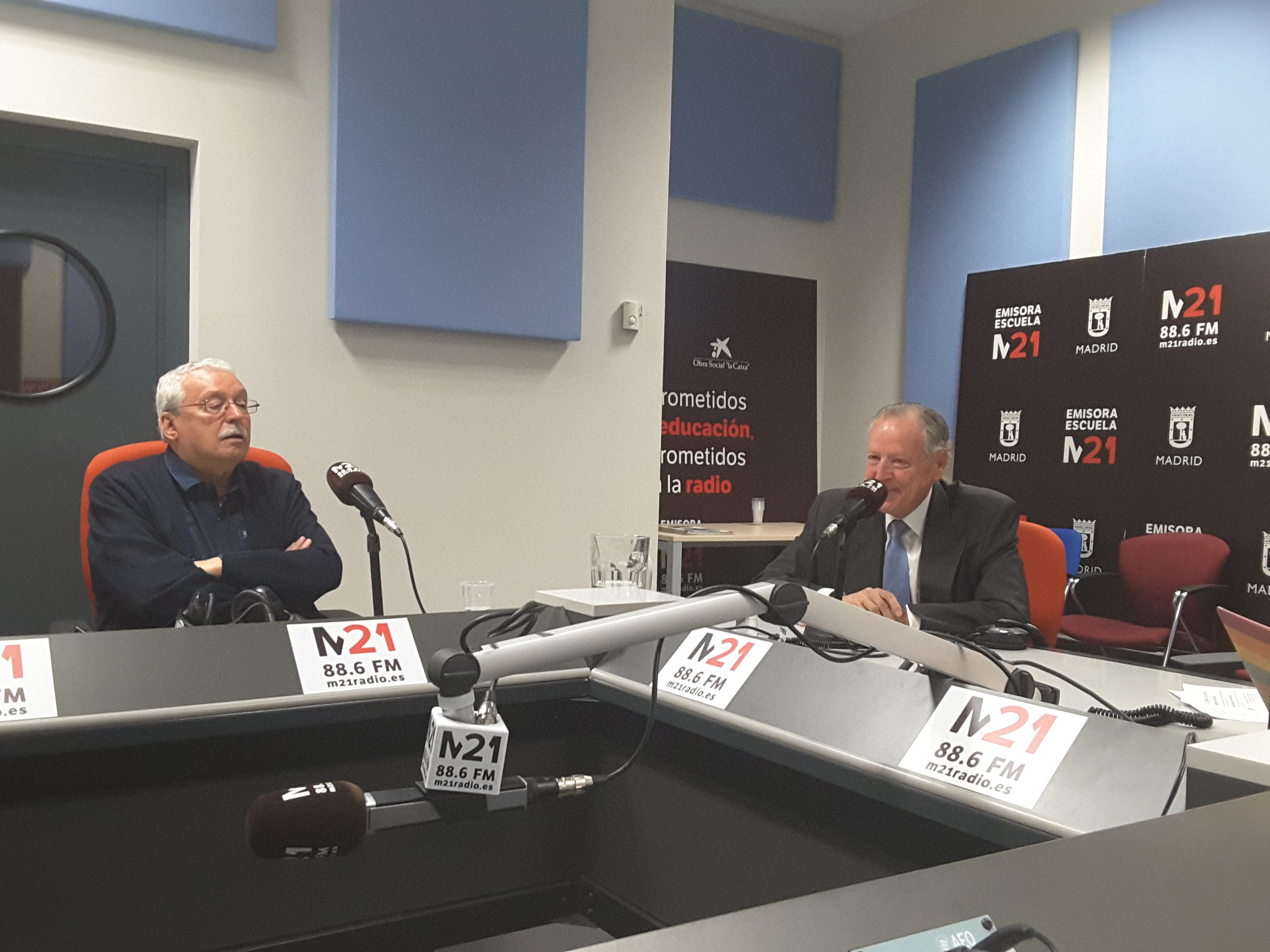 El alcalde más longevo de la democracia –doce años al frente del Ayuntamiento de Madrid- ha visitado esta mañana el programa ‘La Corrala’, de la emisora escuela municipal M21, acompañado por el primer presidente de la Comunidad de Madrid, Joaquín Leguina, al que ha elegido para participar en el magazine matinal por ser “un intelectual independiente, con sentido común, con el que contrastar las realidades del mundo actual”.