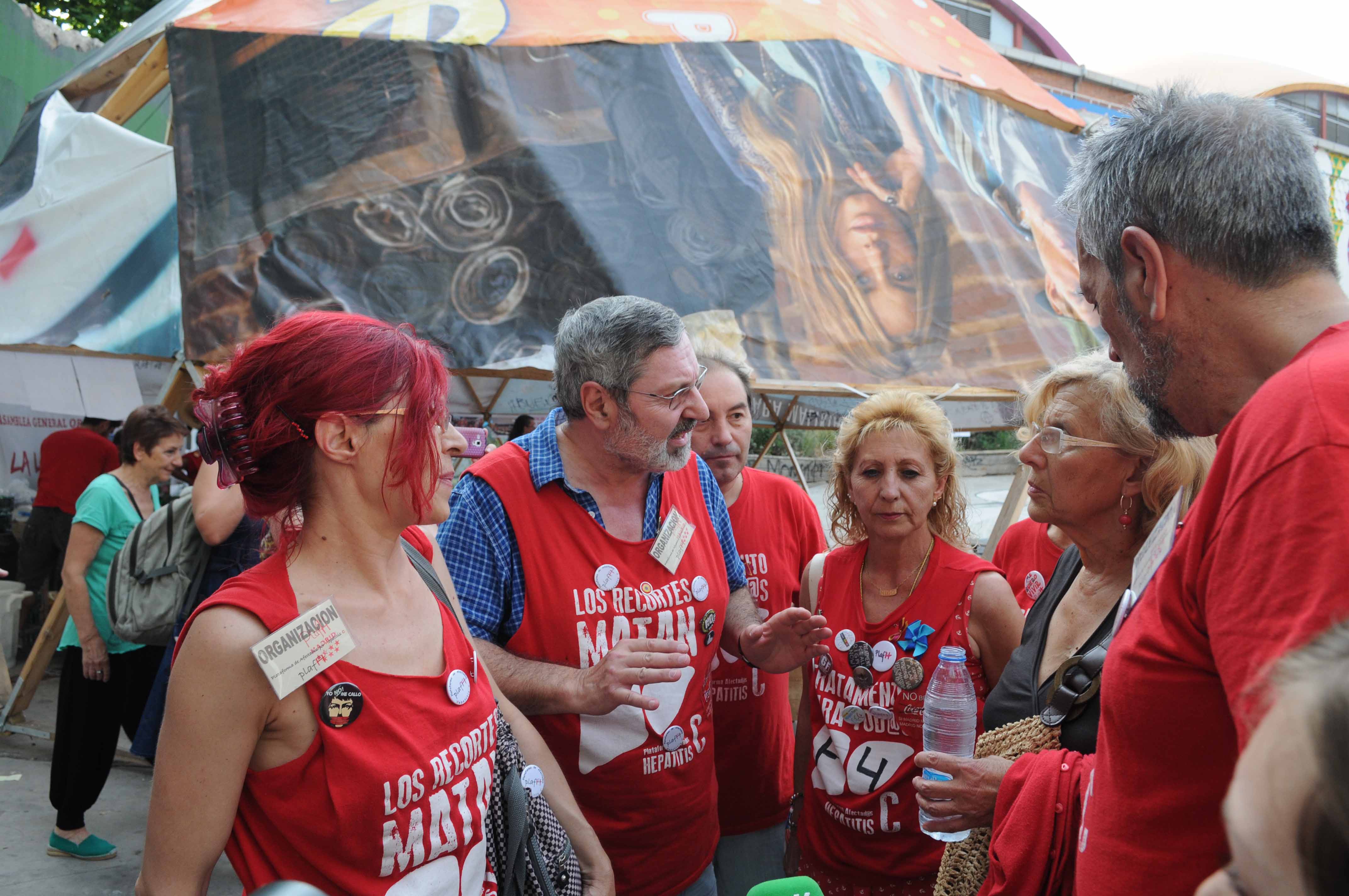 La alcaldesa, junto a la presidenta de la Plataforma, Carmen Hinojar, ha realizado un recorrido por los estands instalados en el Campo de la plaza de la Cebada, en los que se mostraba las reivindicaciones y la lucha de los afectados por la hepatitis C para conseguir la atención y los medicamentos adecuados para superar la enfermedad.