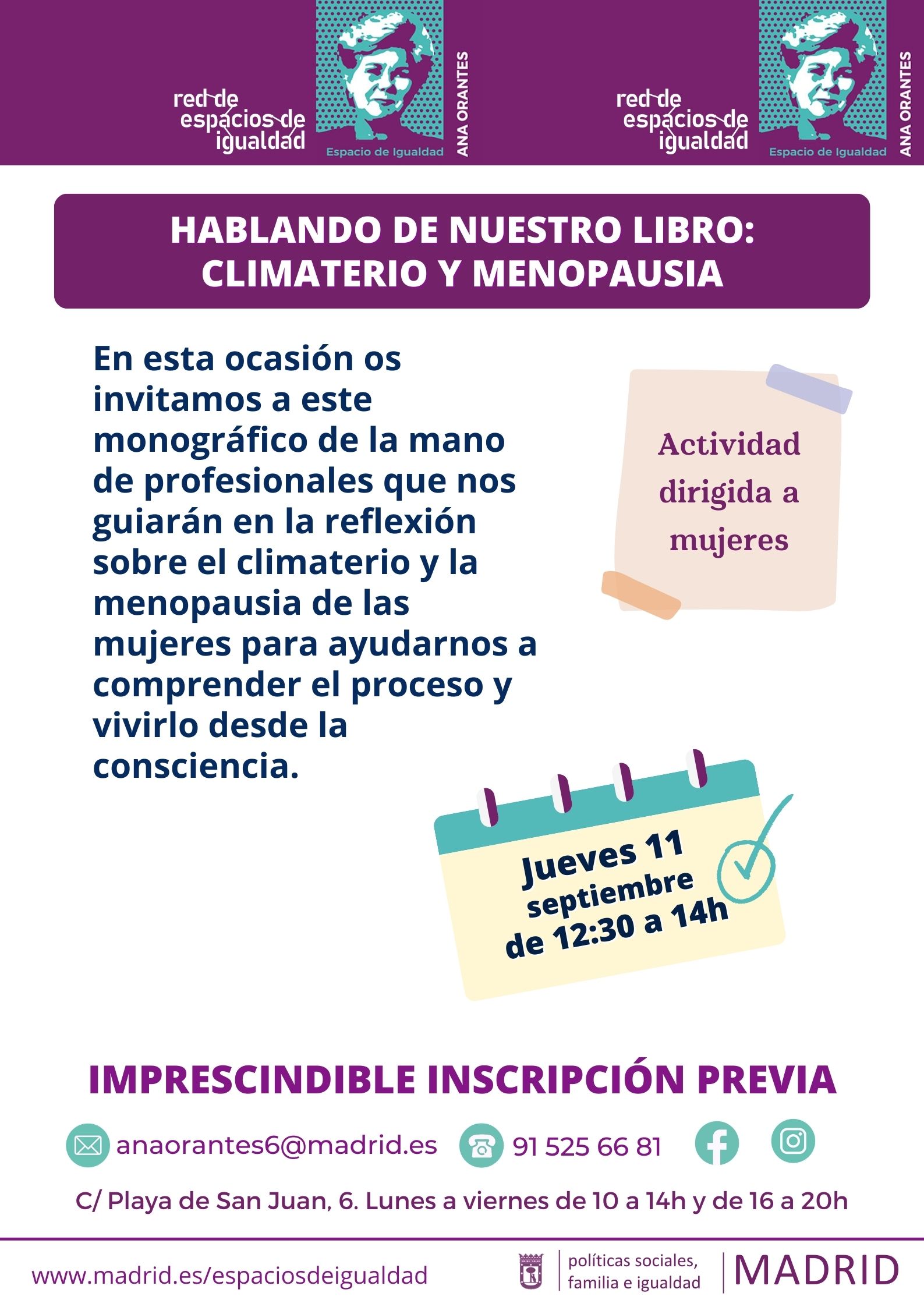 En el Espacio de Igualdad Ana Orantes o a través de: