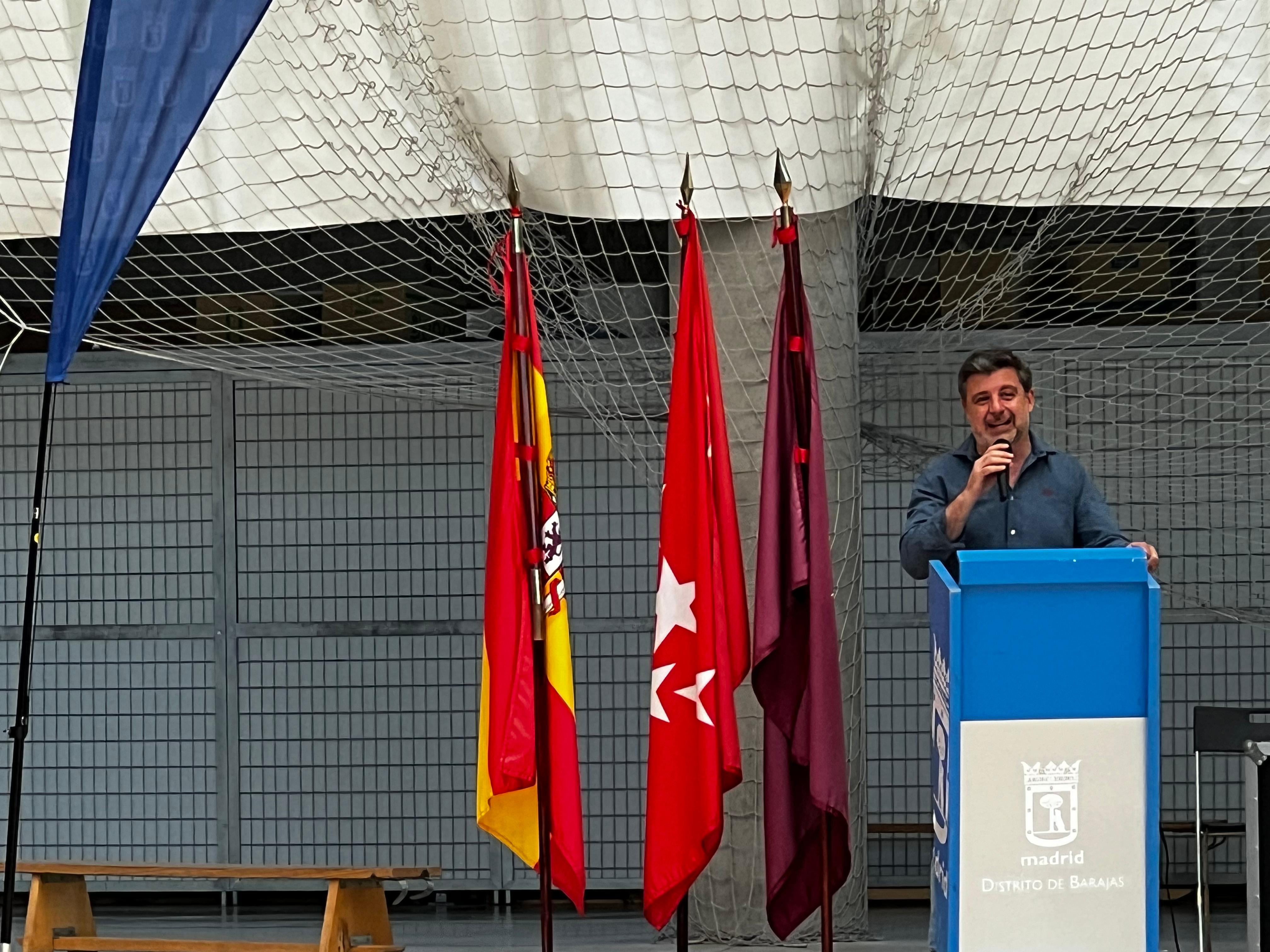 Tras una exhibición de baile del dúoHand to Hand, el concejal de Barajas ha participado en la entrega de los trofeos a los equipos campeones y subcampeones de las competiciones organizadas en el marco de los 45º Juegos Deportivos Municipales y la Copa Primavera durante esta temporada 2024-2025.