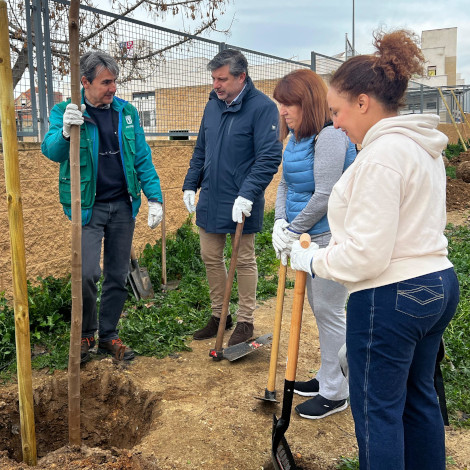 Más árboles en el entorno del Espacio de Igualdad Ana Orantes de BarajasEl concejal de Barajas, Juan Peña, ha colaborado esta mañana en la plantación de ocho moreras en la zona verde de la calle de la Playa de Barlovento 14, aledaña al Espacio de Igualdad Ana Orantes, en la que han participado también una decena de usuarias y profesionales del centro. Los ocho nuevos ejemplares, suministrados por los viveros municipales, se suman a los 16 árboles ya plantados en esta calle durante el último trimestre en el marco de una iniciativa promovida por la Junta Municipal de Barajas y llevada a cabo gracias a la colaboración de la Dirección General de Sostenibilidad y Control Ambiental del Área de Urbanismo, Medio Ambiente y Movilidad.