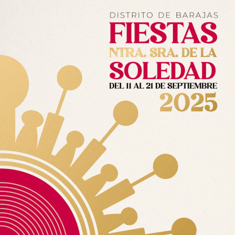 Marlon y la Orquesta Vulkano, actuaciones estelares de las fiestas de Barajas 2025El recinto ferial de la calle de Ayerbe acogerá, desde el jueves 11 de septiembre al lunes 15, las fiestas en honor a Nuestra Señora de la Soledad de Barajas con las actuaciones musicales de la Orquesta Vulkano (a las 24:00 h del viernes 12) y Marlon (a las 24:00 h del sábado 13) como platos fuertes de su programación.