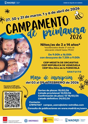 Campamento urbano de primera 2026. Distrito de UseraDel viernes 27 de marzo de 2026 al lunes 6 de abril de 2026