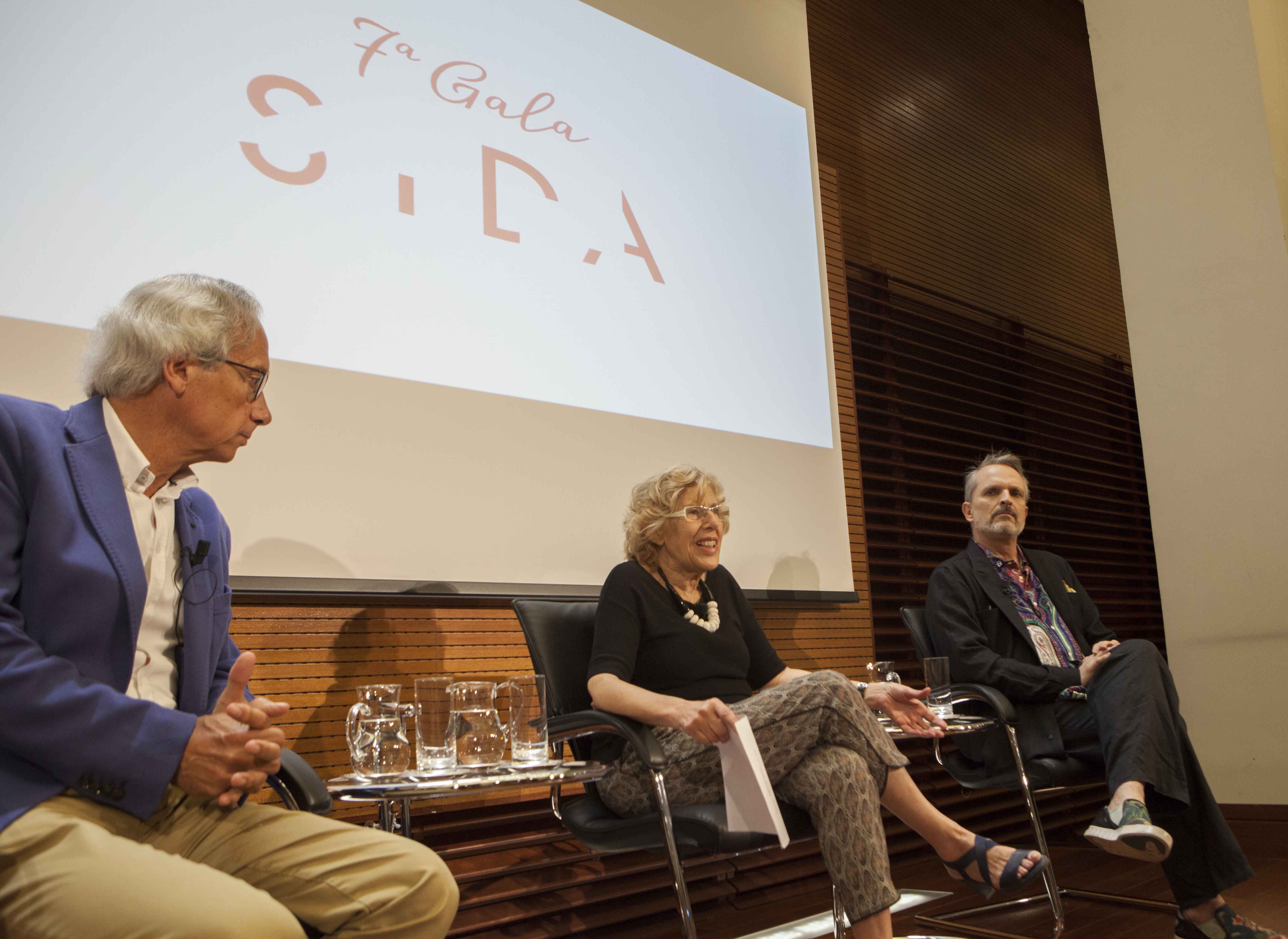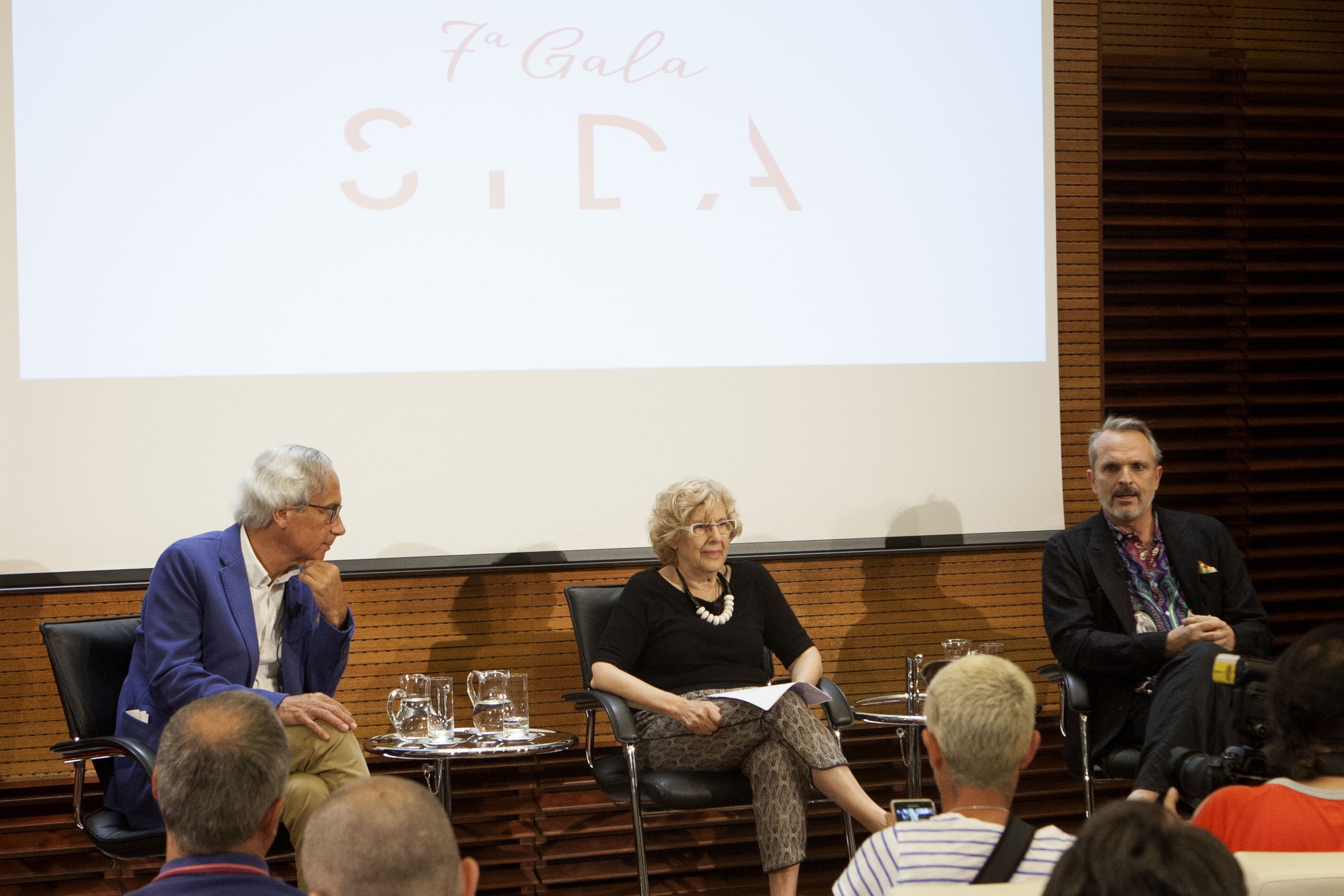 Presentación de la Gala Sida en la que han intervenido la alcaldesa Carmena, el cantante Miguel Bosé y el presidente de la Fundación Lucha contra el Sida, el doctor Bonaventura Clotet.