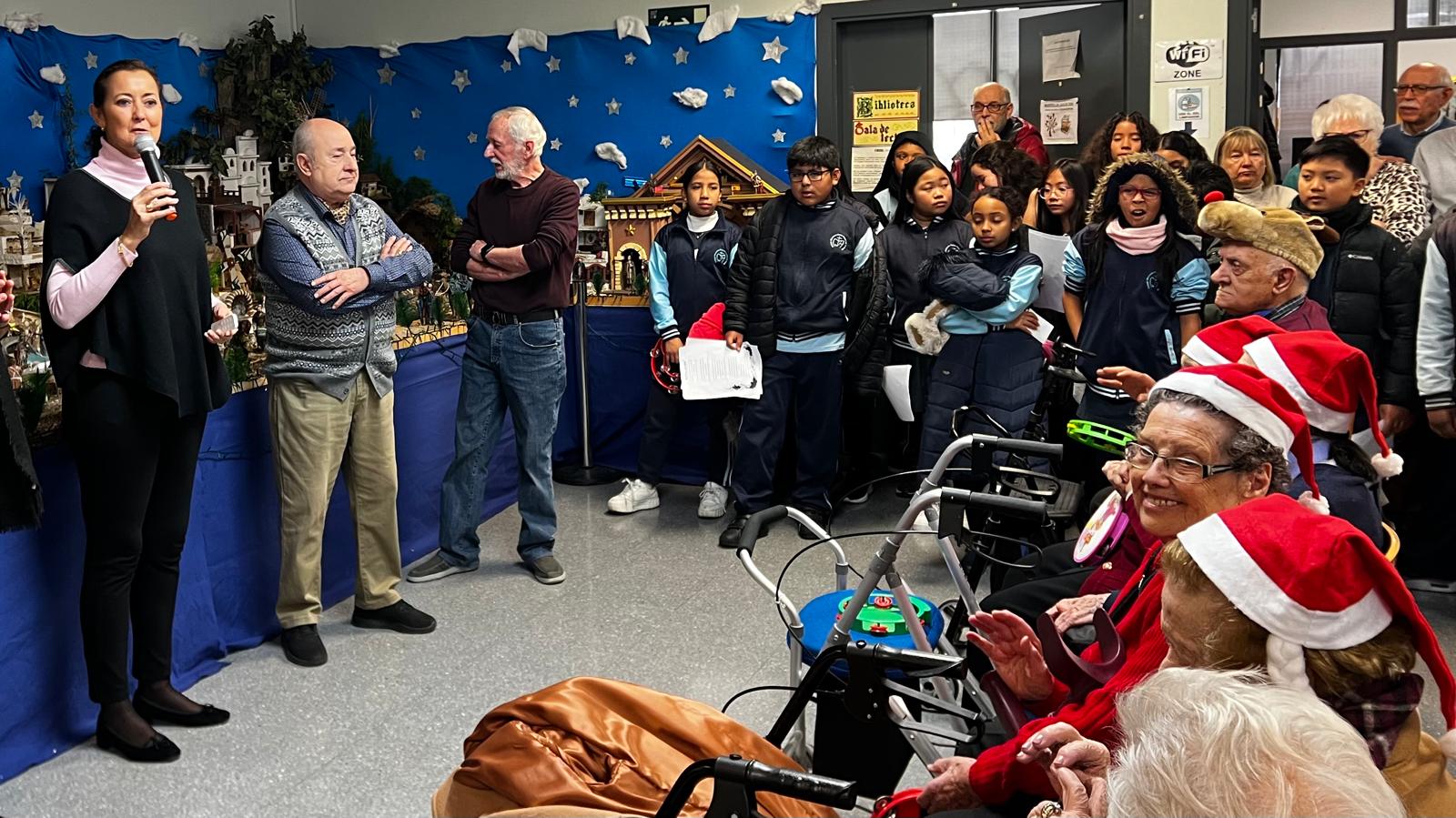 La concejala de Arganzuela, Lola Navarro, ha inaugurado hoy el belén tradicional del Centro Municipal de Mayores Luca de Tena, realizado con materiales reciclados por Moisés Cuerva, socio del centro. El acto ha contado con la actuación del coro de los centros de mayores del distrito y la visita de los alumnos del Colegio Beata María Ana de Jesús.