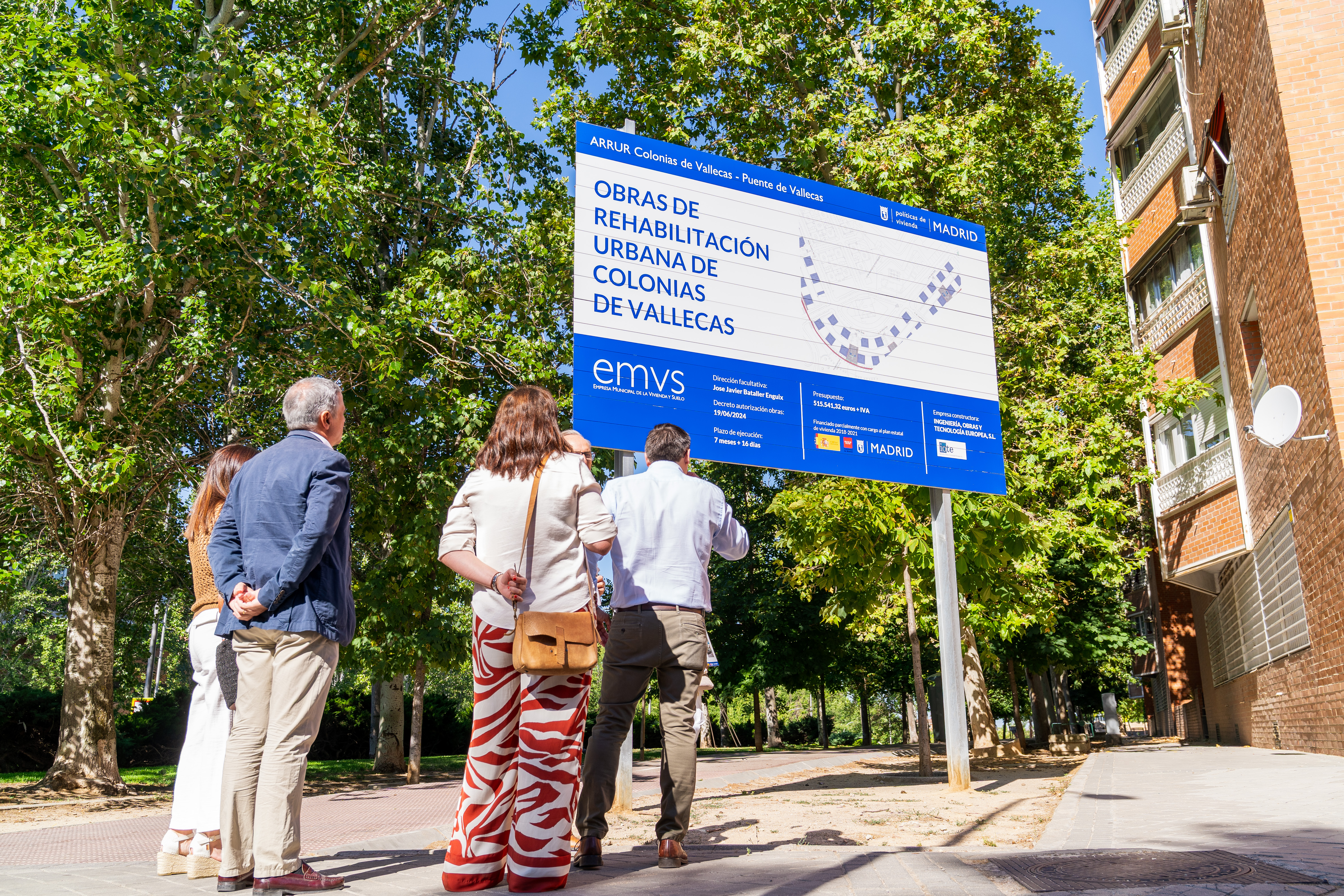El delegado de Políticas de Vivienda y presidente de la Empresa Municipal de la Vivienda y Suelo de Madrid (EMVS Madrid), Álvaro González, ha visitado esta mañana las obras de rehabilitación urbana que EMVS Madrid está realizando en la Colonia de Vallecas, en el distrito de Puente de Vallecas. El Ayuntamiento está ejecutando diversas actuaciones de reurbanización en este Área de Regeneración y Renovación Urbana (ARRU) con el fin de mejorar la accesibilidad, funcionalidad y movilidad de esta histórica zona residencial de Madrid.