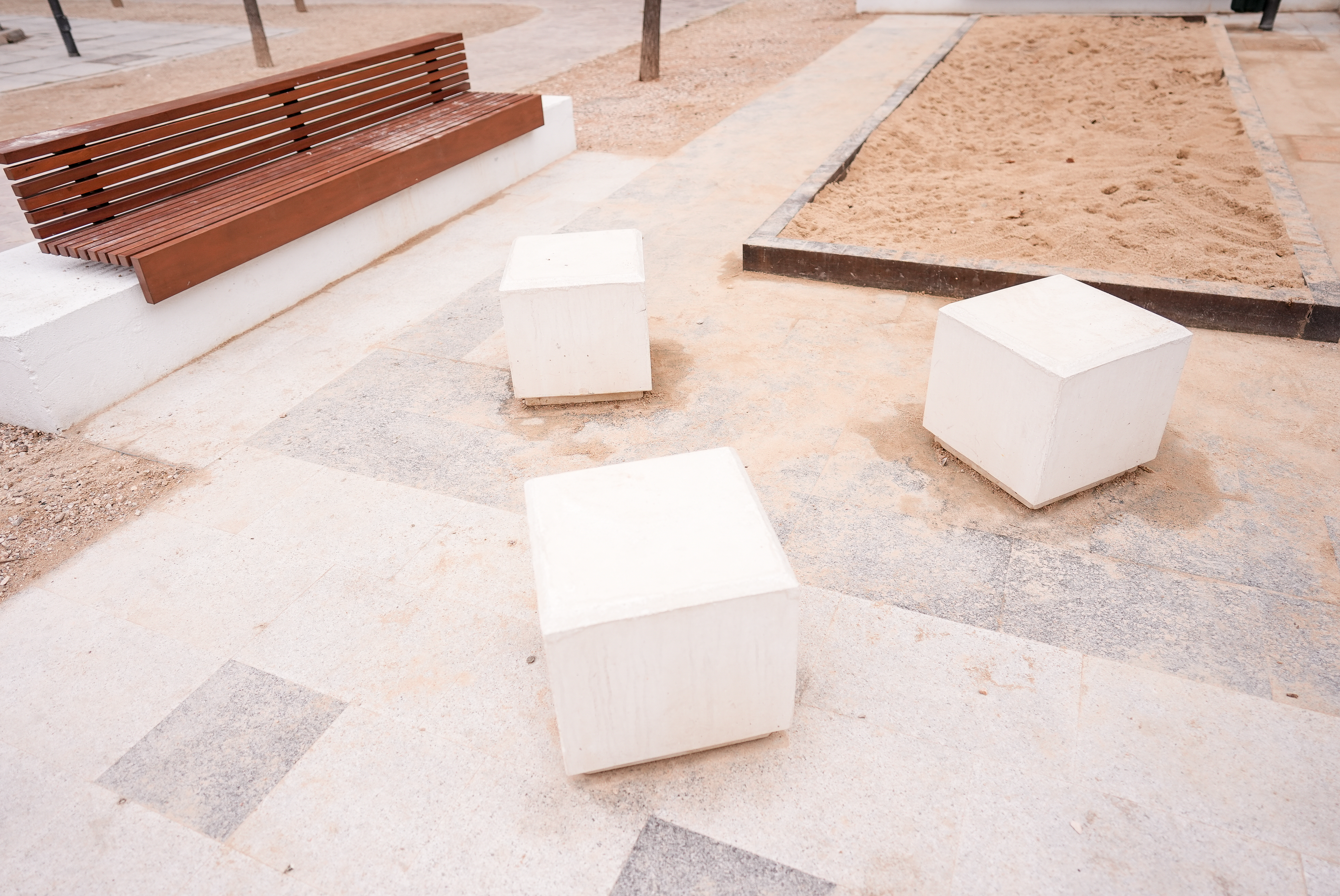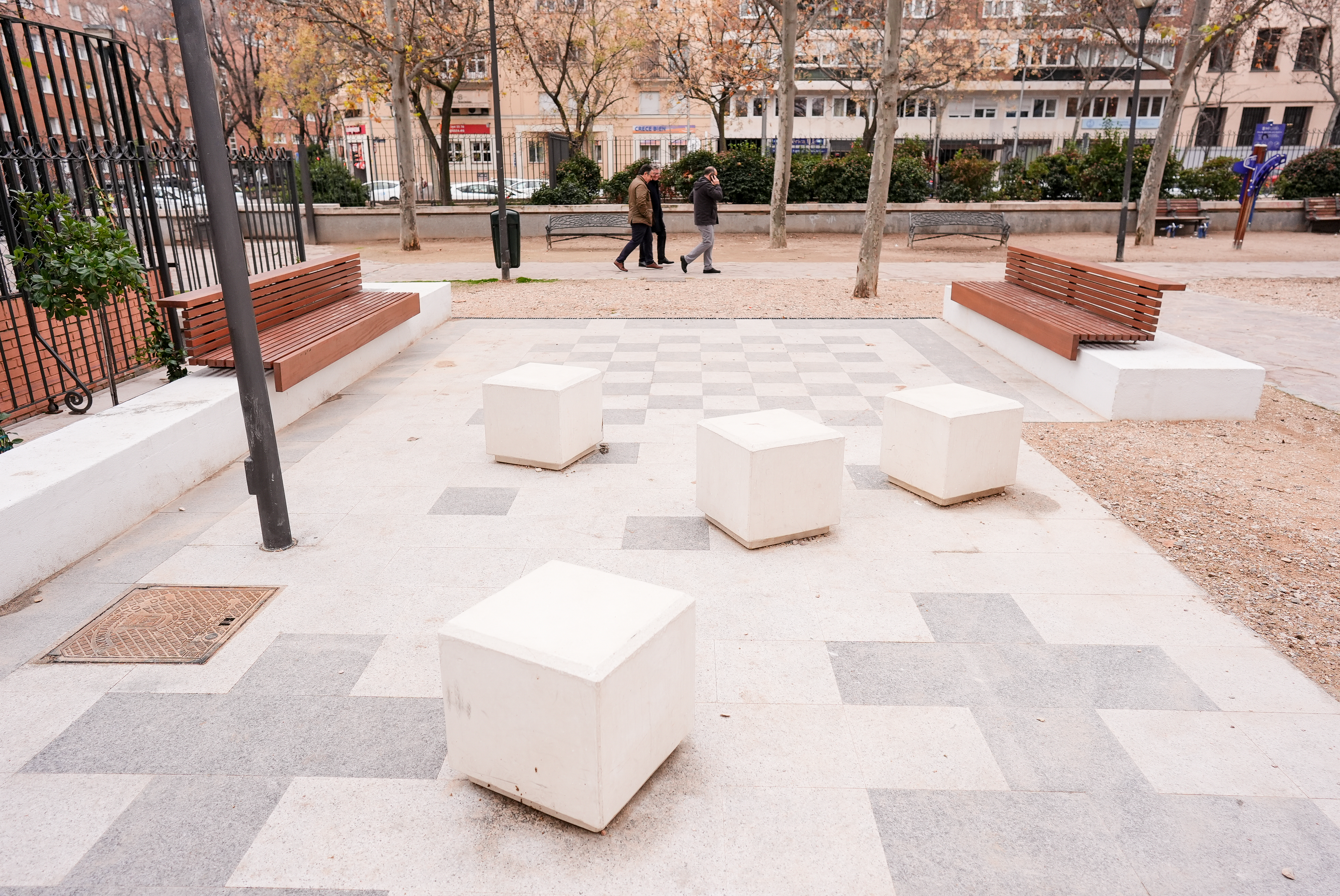 Tras las obras, el nuevo espacio, denominado zona de encuentro generacional, incluye un tablero de juego para favorecer la cohesión entre los usuarios de cualquier edad. Además, se han instalado bancos de hormigón con forma de cubo y se ha creado una zona de arenero para juegos. Asimismo, se ha añadido un parterre en la linde con los locales de hostelería, que actuará como barrera visual de vegetación.
