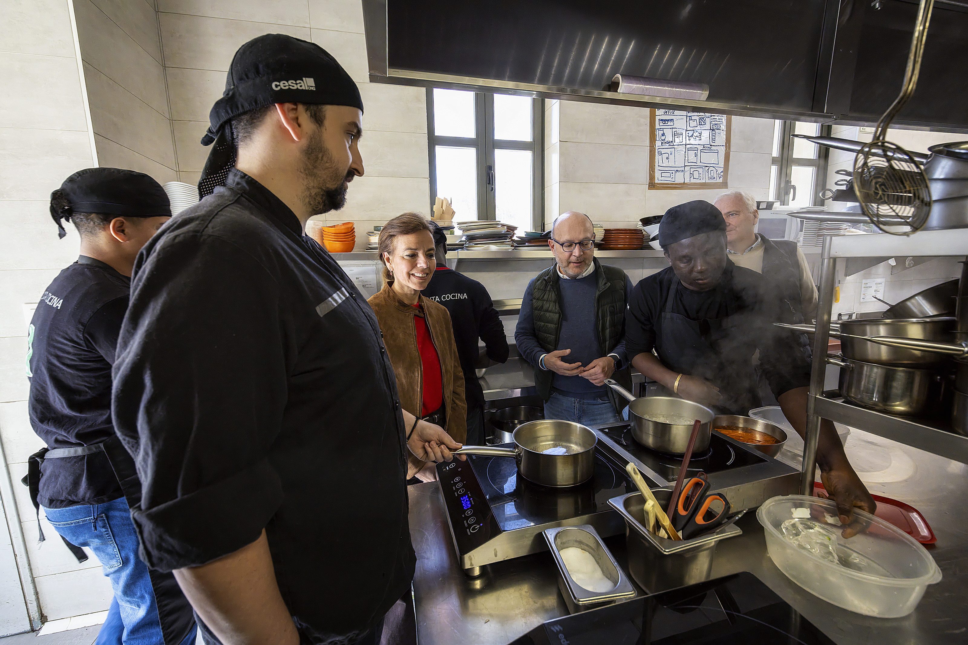 El delegado de Políticas Sociales, Familia e Igualdad, José Fernández, acompañado por la concejala de San Blas-Canillejas, Almudena Maíllo, ha visitado hoy el programa La Quinta Cocina, con el que el Ayuntamiento de Madrid promueve la formación e inserción sociolaboral de jóvenes en riesgo o situación de exclusión social. Tal como ha informado el delegado, este proyecto proporcionó capacitación como ayudante de cocina y camarero a 112 personas en 2025, lo cual mejoró su empleabilidad y favoreció su acceso al mercado de trabajo. De hecho, 66 jóvenes consiguieron un empleo tras concluir las prácticas o durante el proceso.