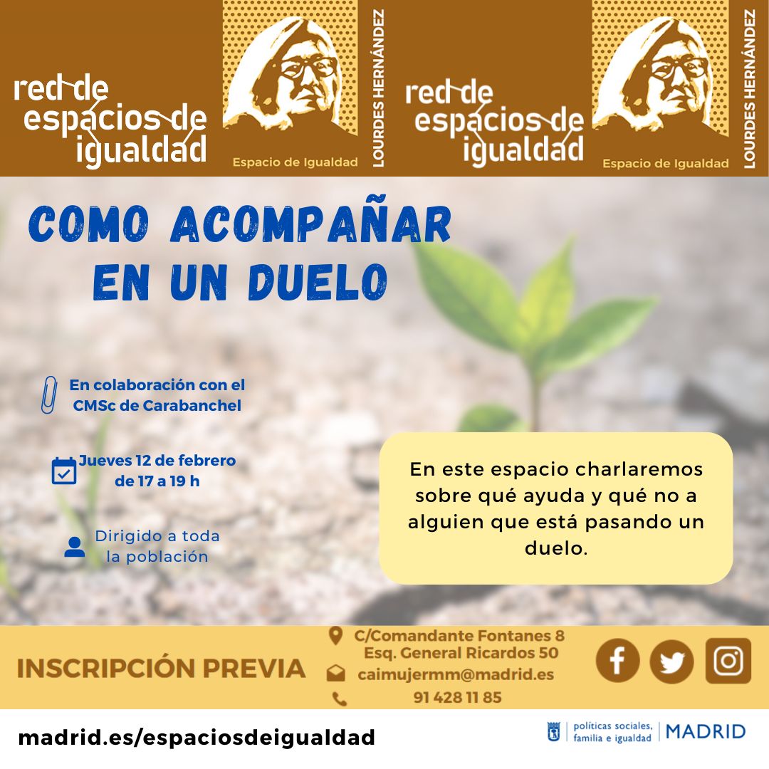 Cómo acompañar en un duelo. En colaboración con CMSc CarabanchelJueves 12 de febrero de 2026 a las 17:00 horas