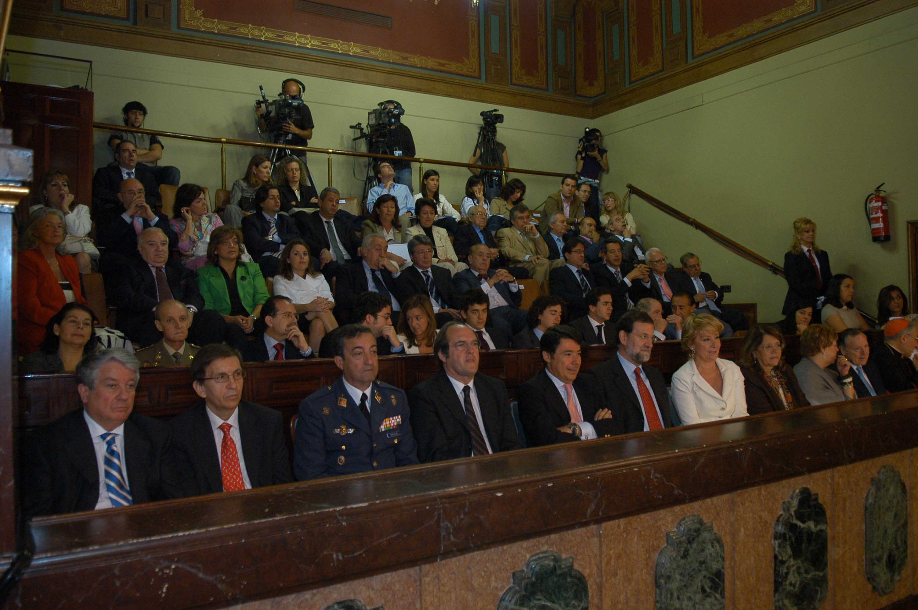 Y de la misma manera que la propuesta del Partido Popular ha unido a los madrileños –gracias al esfuerzo de este equipo y al brillante liderazgo de Mariano Rajoy, artífice de la victoria del centro español en las elecciones de mayo–, de igual modo, estoy seguro de que la voz y la trayectoria de Madrid lograrán unir también a los españoles, a quienes ofrecemos una capital de la que sentirse orgullosos. Seguiremos sirviendo, pues, a su voluntad de concordia, y nos esforzaremos en ser aún más esa ciudad abierta, solidaria, sin blindajes, que no impone una memoria oficial a nadie, sino que respeta la de cada cual, y hacia la que los españoles se vuelven en busca de aire fresco y de respuestas. Porque en estos años hemos tenido que transmitir confianza a los españoles, al tiempo que ellos nos arropaban en los momentos de crisis, en un recíproco ejercicio de solidaridad que ha estrechado todavía más nuestros lazos. Nos hemos sentido queridos, y hemos correspondido, y por eso, de acuerdo con nuestra histórica vocación de servicio al país, renovamos ahora nuestro compromiso con los principios de libertad, justicia y pluralismo político que lo fundamentan desde 1978, así como con la Corona y las instituciones del Estado. Sabemos que estamos en esto en sintonía con los españoles, ya que, como dijo Azaña, si no existiera Madrid sería preciso inventarlo en bien de la Nación, dado que “es el centro donde convergen todas las regiones españolas y todos los intereses nacionales y donde están los representantes, políticos o no, de toda España”.