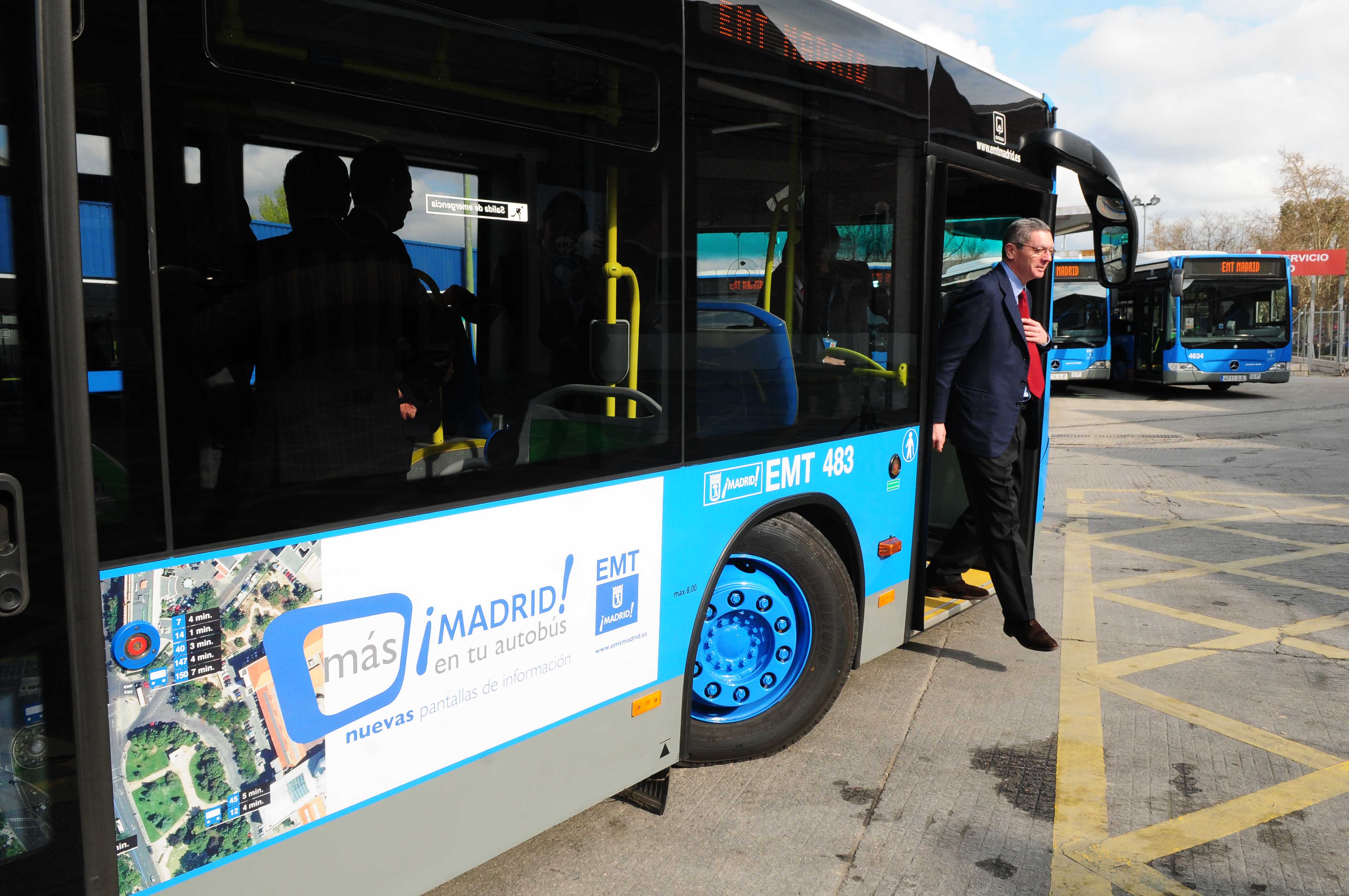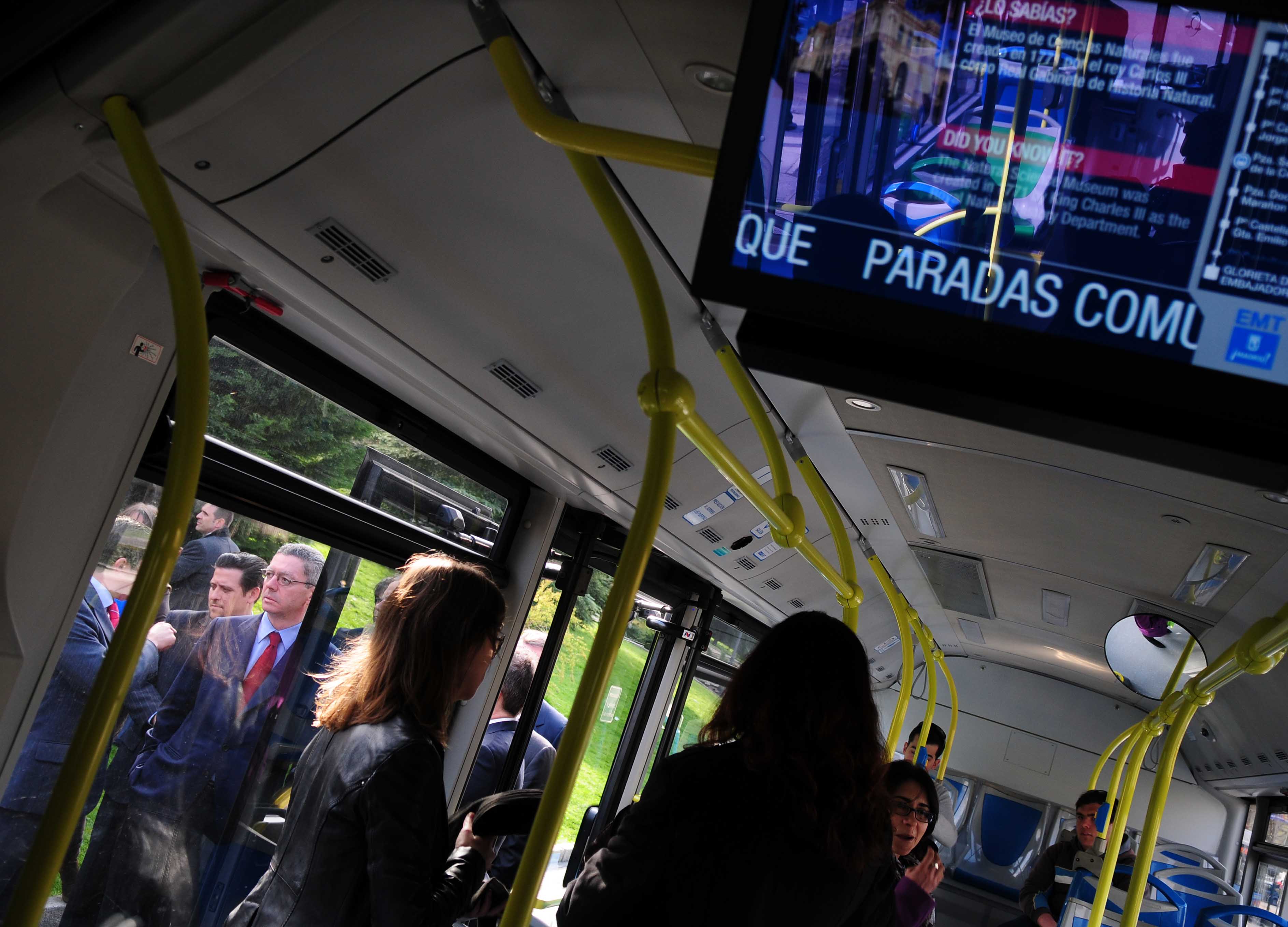 Desplazarse por la ciudad en los autobuses de la EMT cada vez tiene más ventajas. Además de cómodos, accesibles, rápidos y sostenibles, los usuarios estarán mejor informados. El alcalde, Alberto Ruiz-Gallardón, ha presentado un proyecto que se va a poner en marcha, a modo de prueba, en 35 autobuses de la línea 27, una de las de mayor frecuencia y número de viajeros de toda la red, que cubre el trayecto Embajadores-Plaza de Castilla. La iniciativa consiste en la instalación de pantallas panorámicas que ofrecerán amplia y diversa información a bordo.