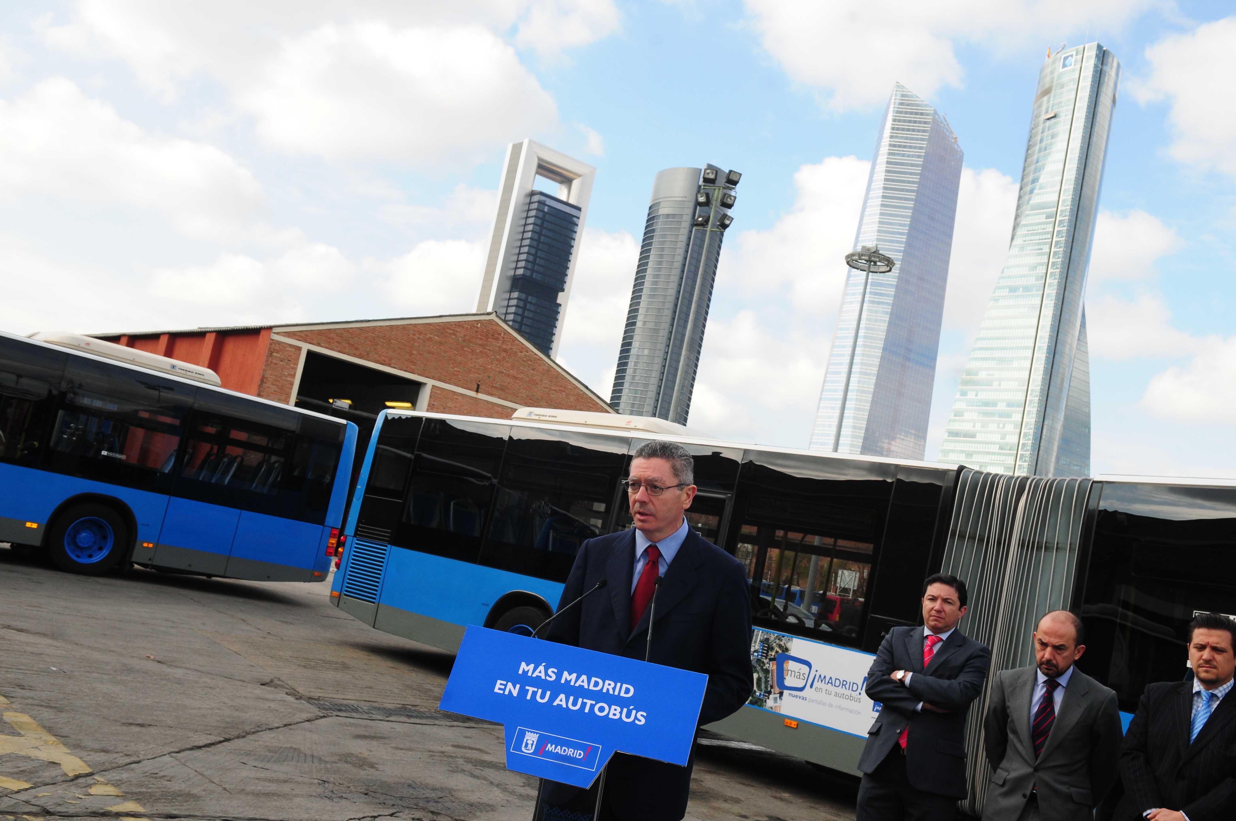 El alcalde, Alberto Ruiz-Gallardón, ha presentado un proyecto que se va a poner en marcha, a modo de prueba, en 35 autobuses de la línea 27. La iniciativa consiste en la instalación de pantallas panorámicas que ofrecerán amplia y diversa información a bordo.