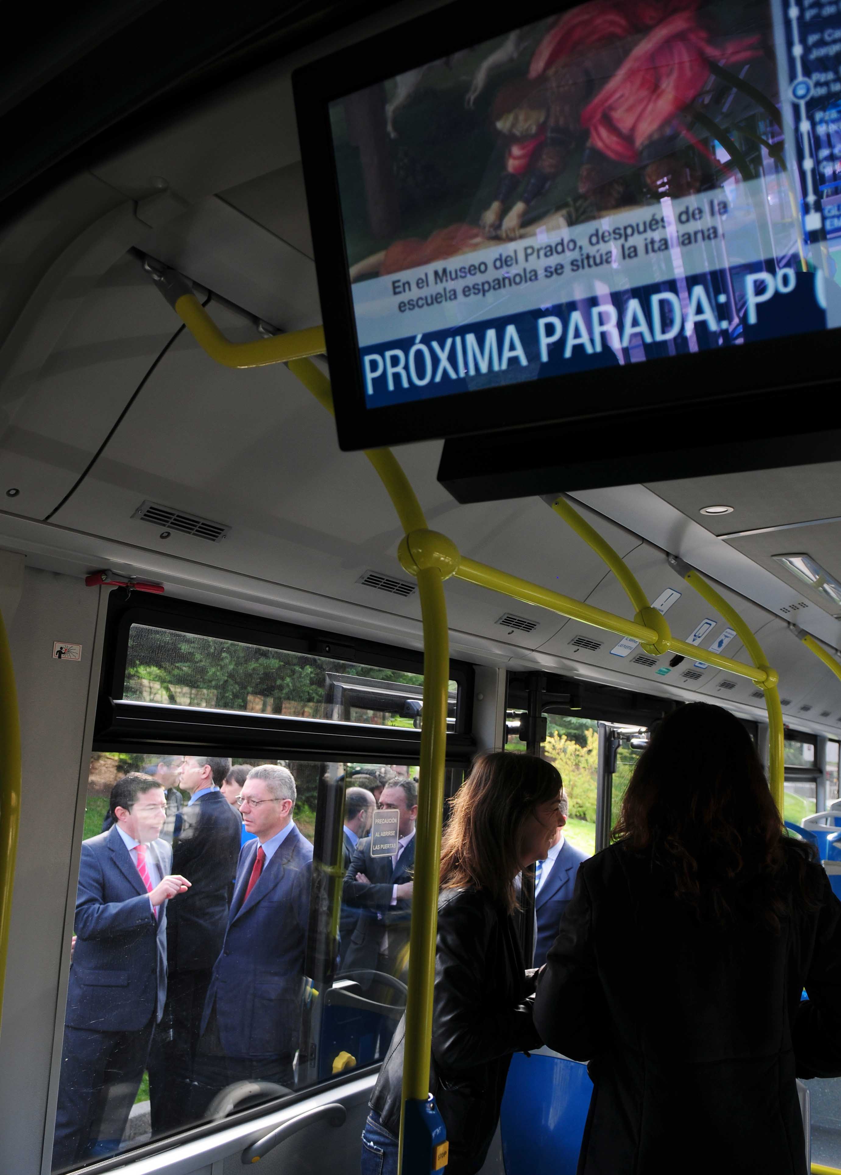 Este sistema multimedia, ha explicado el alcalde, informará sobre el recorrido de la línea, de las próximas paradas, de la conexión y el tiempo de espera de otras líneas, o de posibles incidencias en la red de la EMT. Pero también, aprovechando las posibilidades que ofrece este soporte, se ofrecerá información meteorológica, sobre la agenda cultural y de ocio, o sobre los puntos de mayor interés turístico por los que circula la línea. En un futuro se estudiará la posibilidad de incluir titulares de noticias e, incluso, publicidad. "Asumimos el reto de hacer de la EMT un elemento fundamental del sistema de movilidad de una ciudad tan extensa como Madrid, por la que cada día se desplazan más de cinco millones de ciudadanos y visitantes".