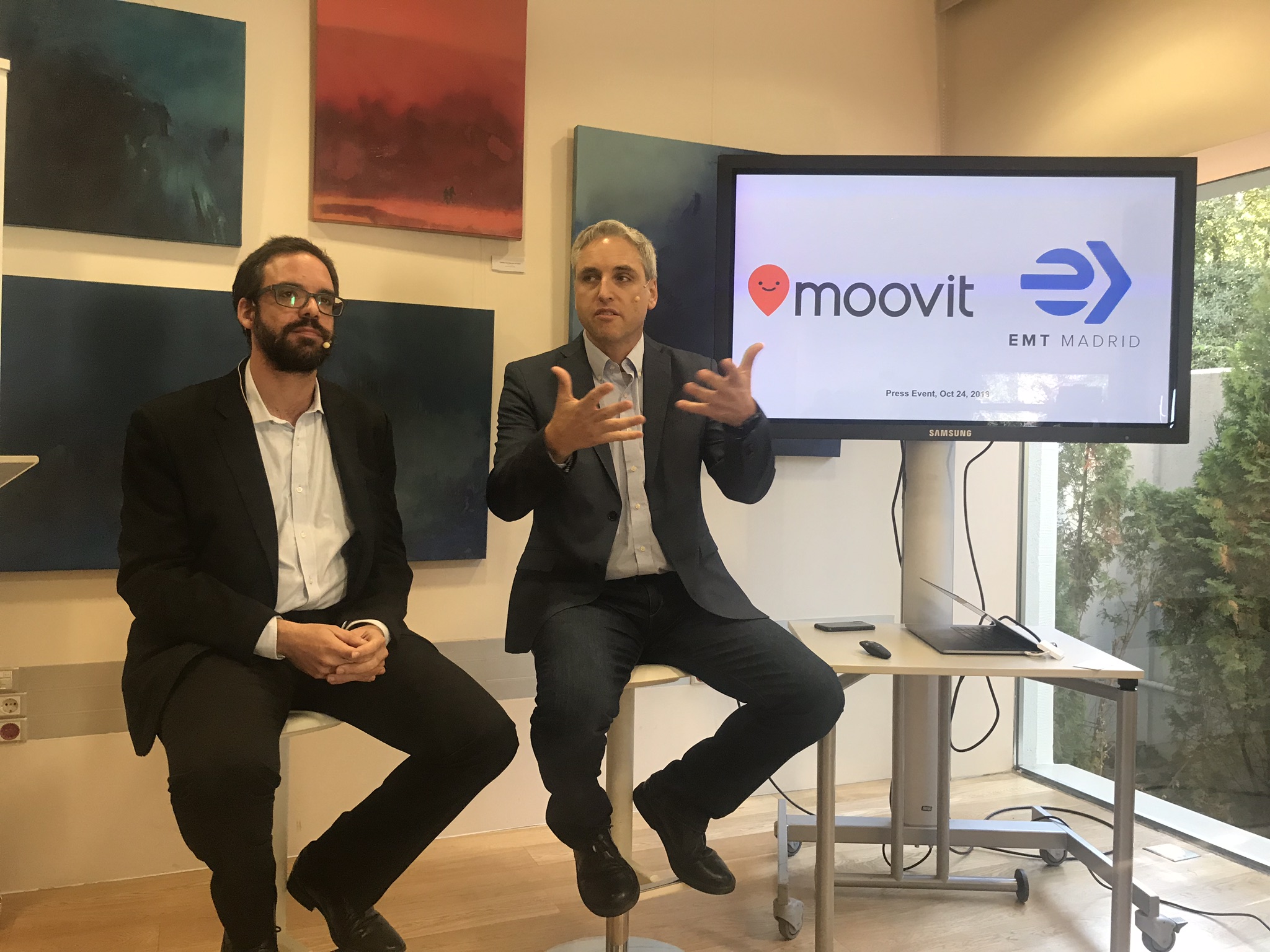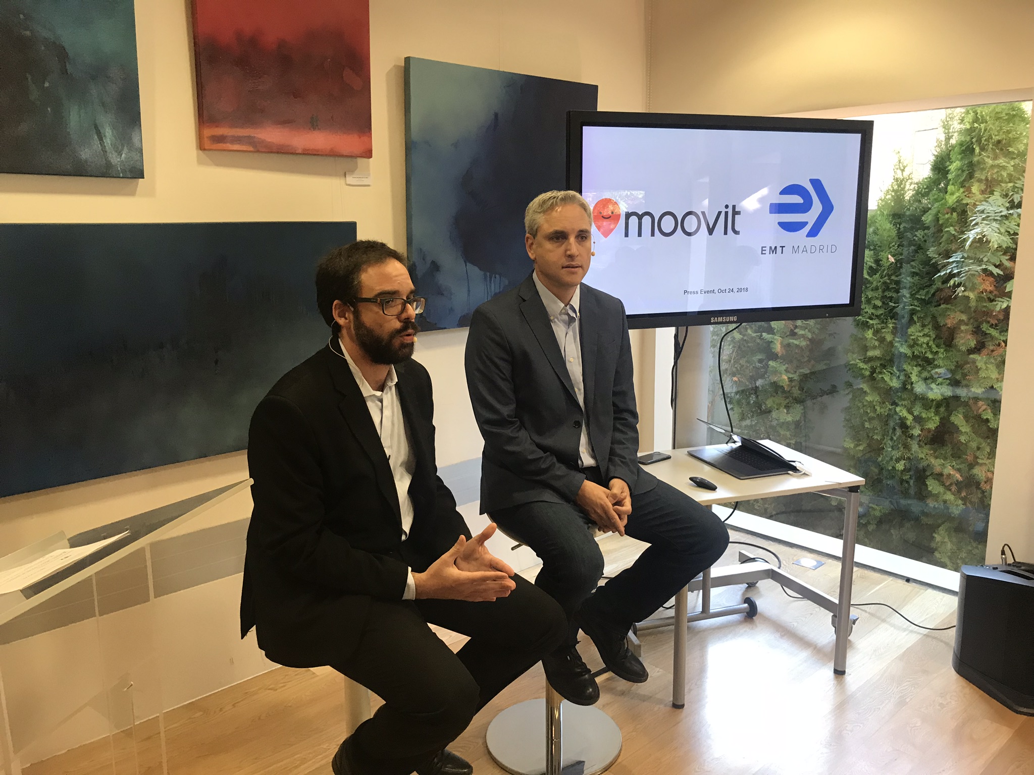 Pie de foto: A la izquierda Álvaro Fernández Heredia, gerente de la EMT de Madrid, y a la derecha Yovav Meydad, director de Marketing de Moovit.
