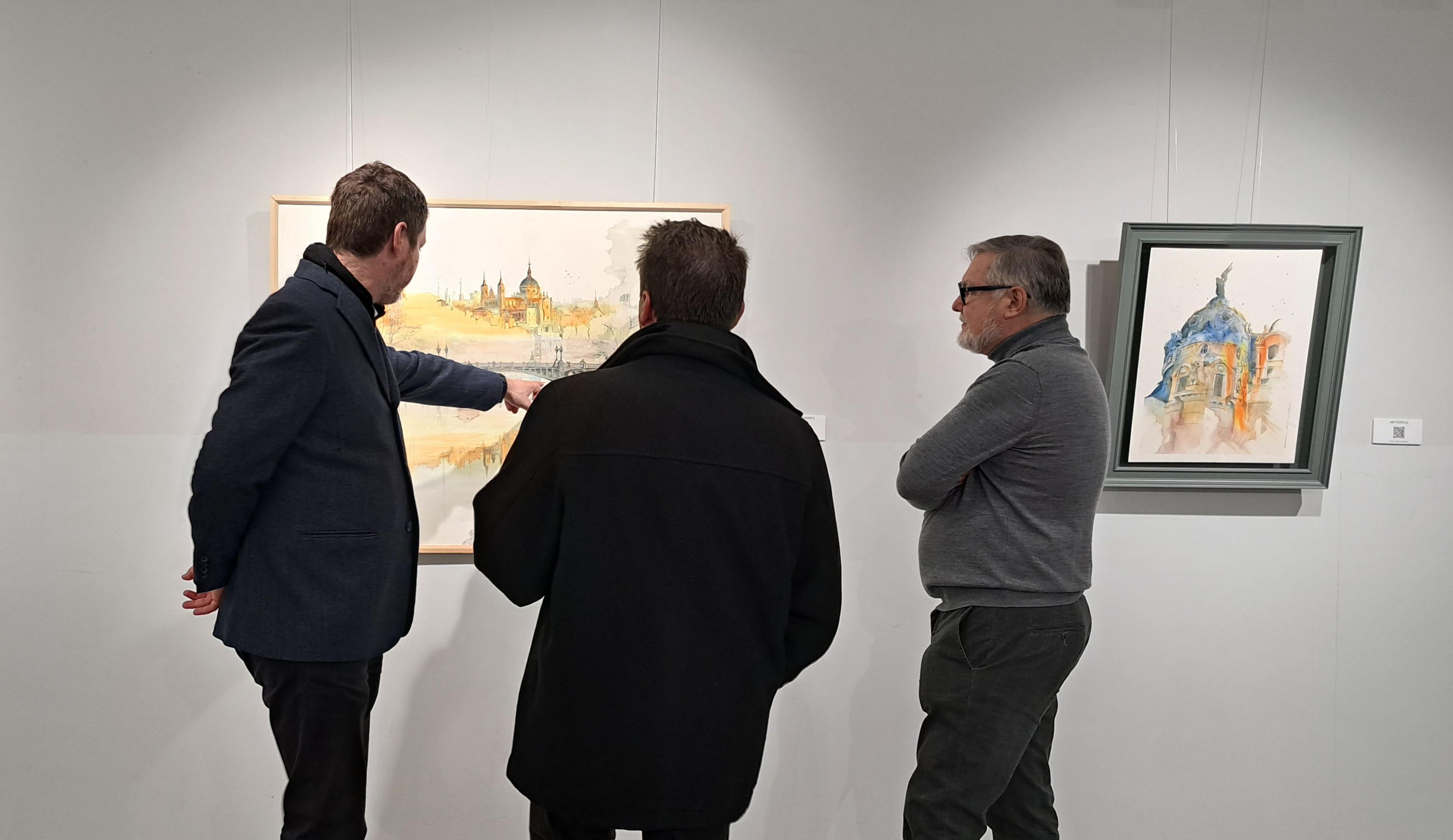 La sala de exposiciones del Auditorio Paco de Lucía acoge desde hoy la exposición Amigos, que esta tarde ha presentado el arquitecto y acuarelista arquitectónico Daniel Mass Lorenzo, acompañado por el concejal del distrito, Alberto González, quien ha animado a visitar esta singular muestra pictórica que aúna acuarela y arquitectura con gran expresividad. Compuesta por obras de la colección de gran formato Acuarelas y algo mass… del artista argentino afincado en Madrid, permanecerá abierta al público hasta el 3 de diciembre, dentro de la agenda cultural de la Junta Municipal de Latina.