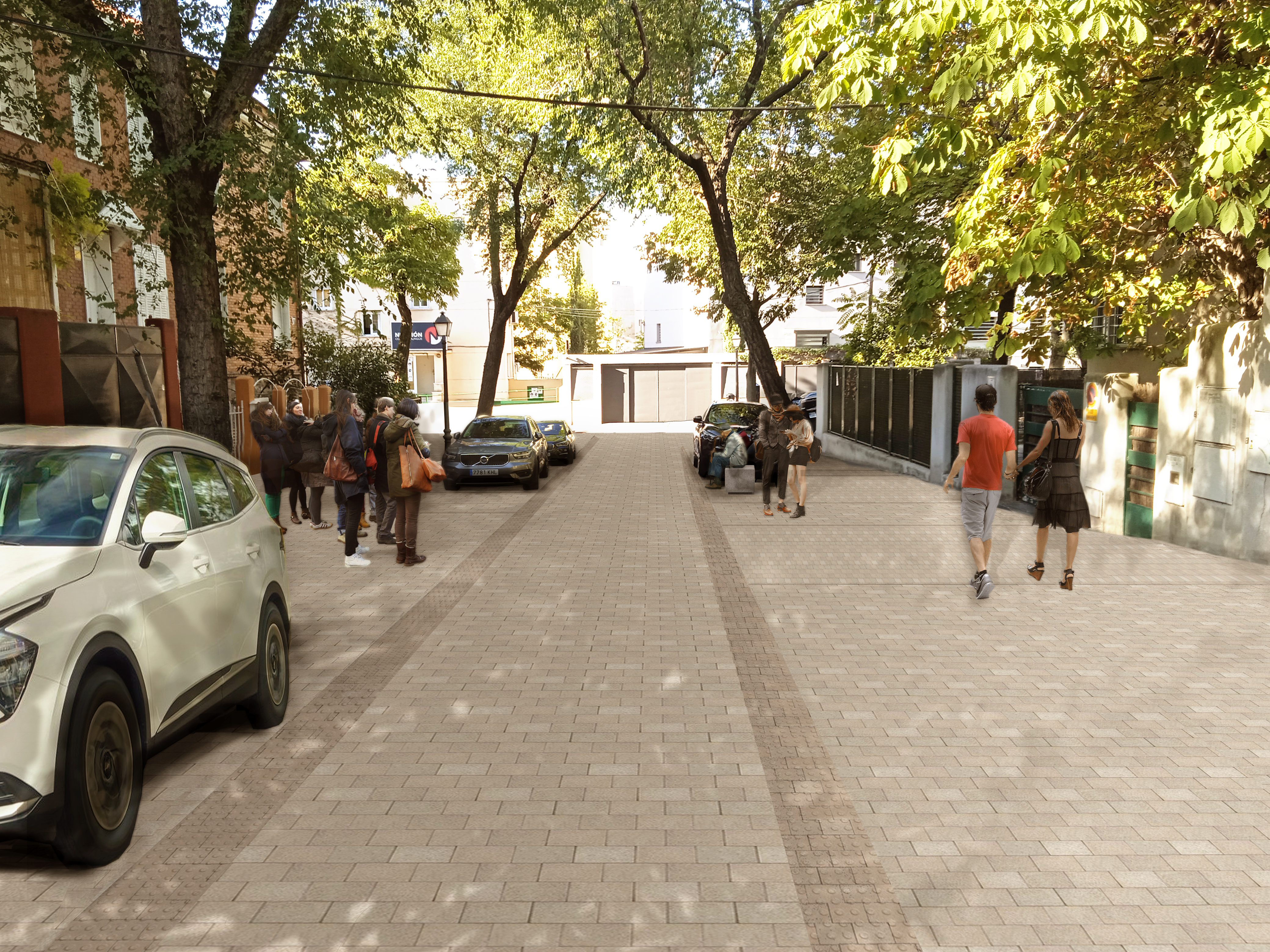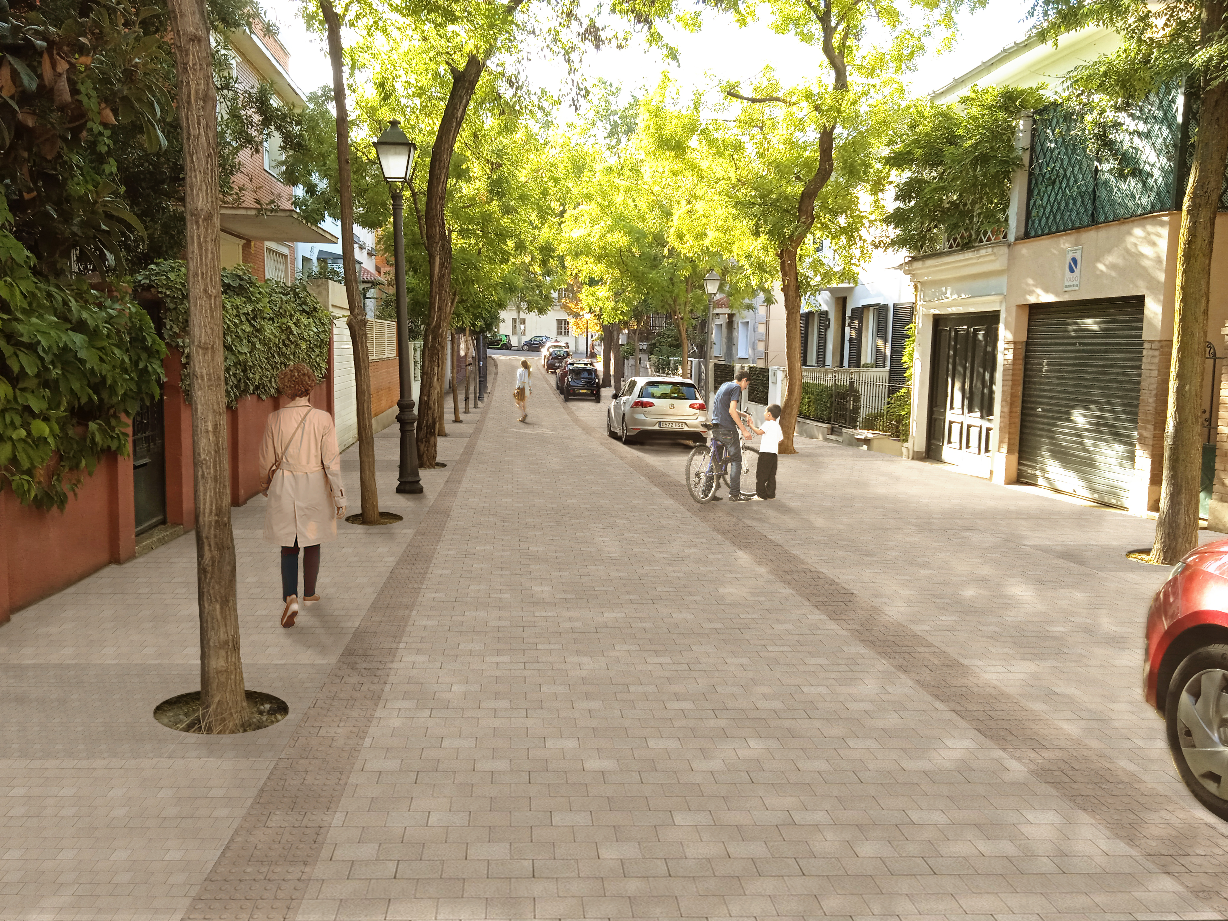 La intervención plantea la pavimentación homogénea de aceras, calzadas y aparcamientos con adoquín gris de varios tamaños, dando coherencia a la actuación y diferenciando la colonia de la ciudad que la rodea. Además, se respetará el arbolado existente y se pavimentarán los alcorques y aceras circundantes mediante adoquín de pequeño tamaño que permita adaptarse a las raíces. Asimismo, se soterrarán las redes de electricidad y telecomunicaciones para la mejora de la estética y la seguridad de ambas colonias.