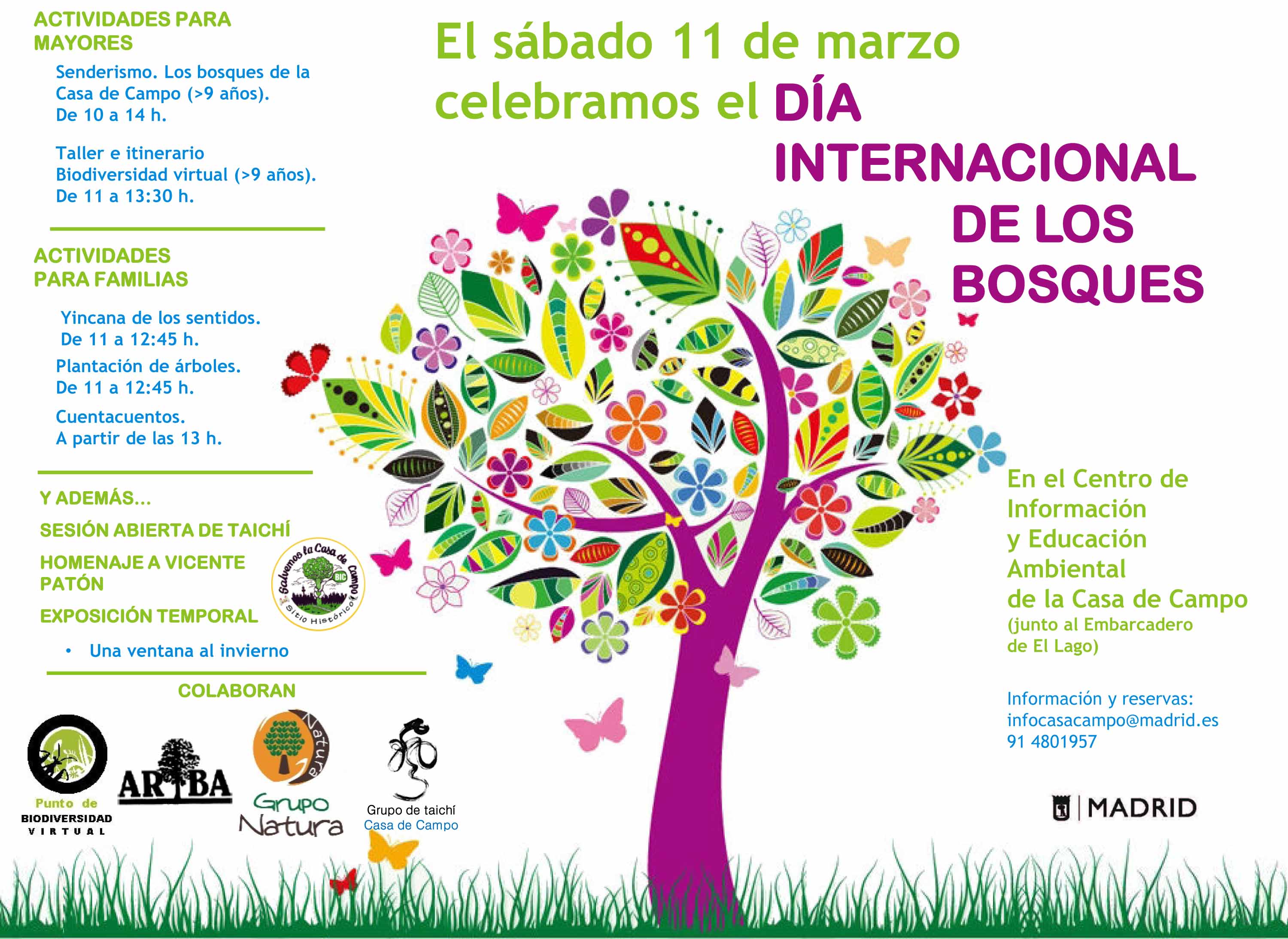 El Ayuntamiento de Madrid se suma a la celebración del Día Internacional de los Bosques 2017, que se celebra mañana sábado 11 de marzo. Los servicios municipales de Educación Ambiental han organizado, a partir de las 10.00 horas, una serie de actividades para todos los públicos, en el Centro de Información y Educación Ambienta de la Casa de Campo.