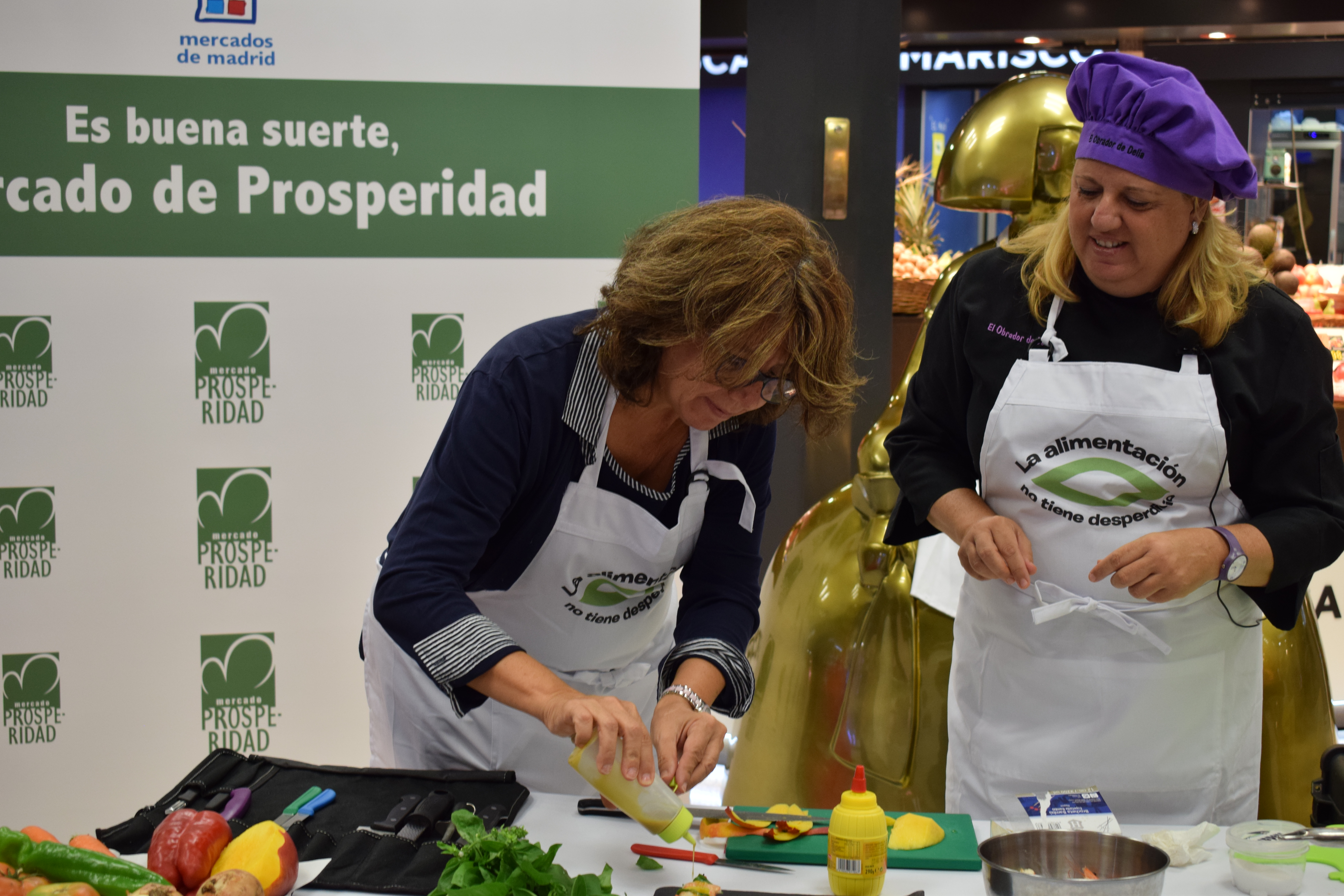 Esta actividad ha contado con unas invitadas excepcionales: Las meninas de Madrid que han hecho acto de presencia en un taller celebrado en el mercado de Prosperidad en el que han compartido recetas y trucos para aprovechar las “sobras” en preparaciones deliciosas, apetecibles y originales./