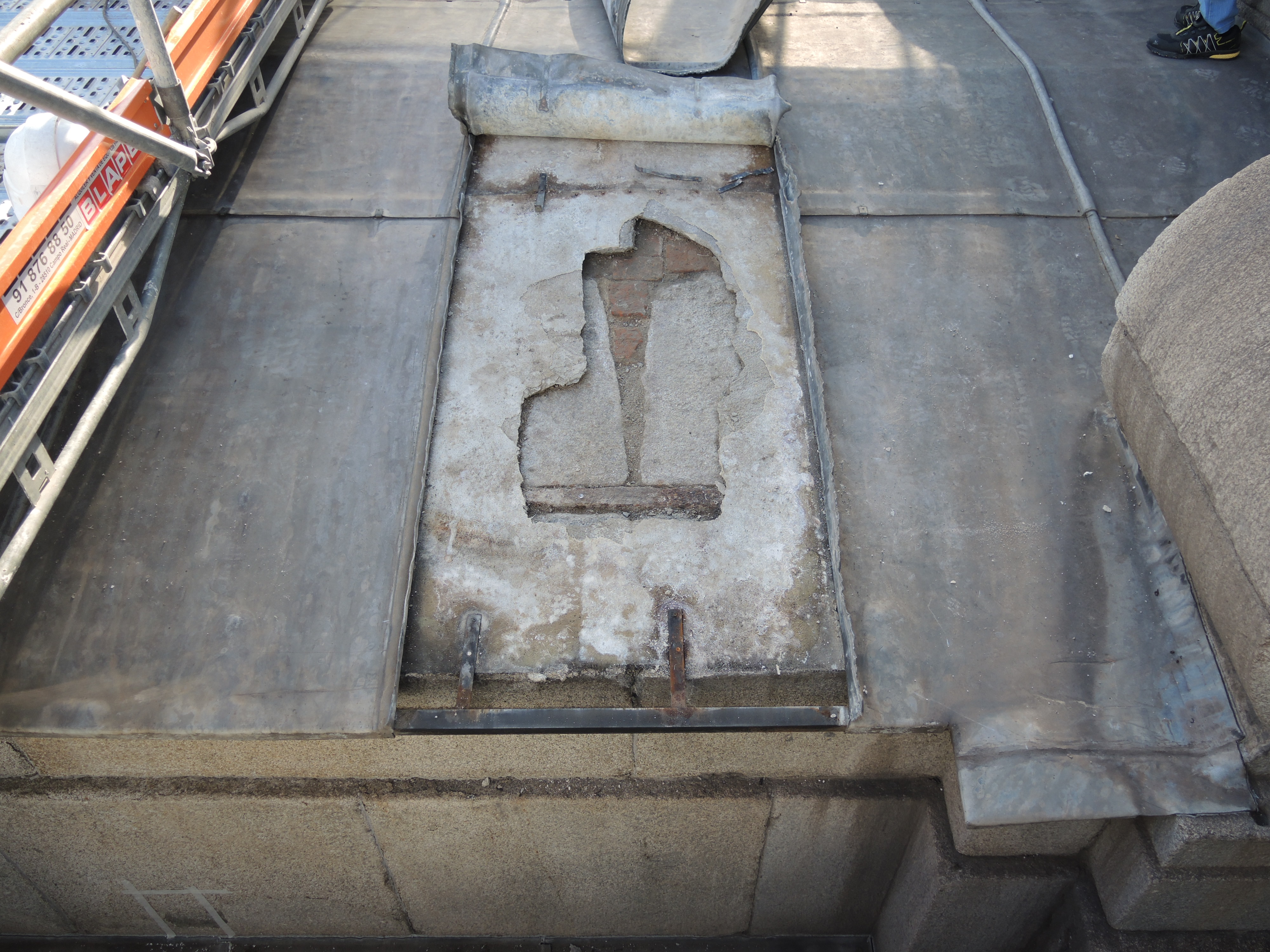 - Se ha comprobado que la cubierta de plomo no actúa de modo eficaz y hay humedad de condensación en la parte alta de la estructura de la puerta