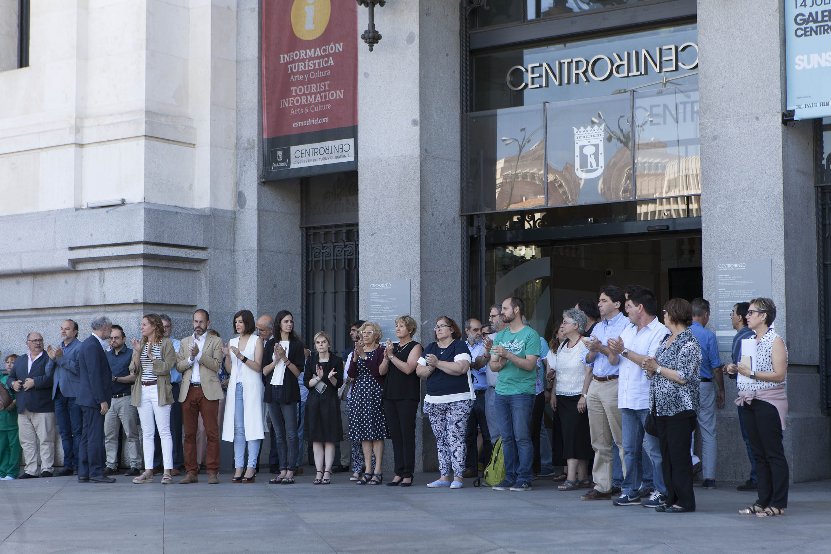 El Ayuntamiento de Madrid ha guardado un minuto de silencio a las 12 del mediodía, en las puertas de acceso a todas las dependencias municipales, como muestra de repulsa y en recuerdo de las víctimas del atentado ocurrido ayer en la ciudad francesa de Niza.