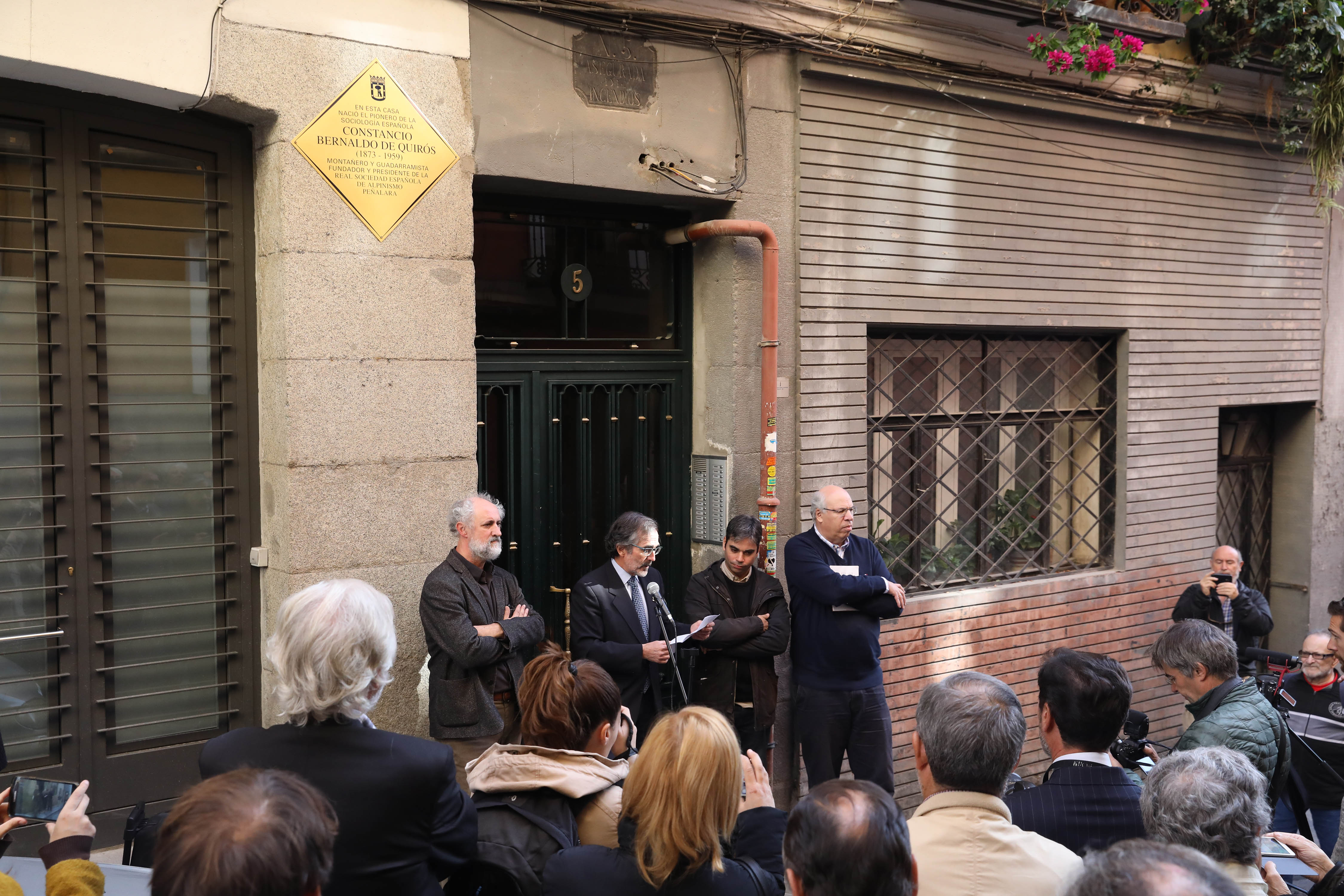 Las aportaciones que hizo Constancio Bernaldo de Quirós (1873-1959) en ámbitos tan diversos como la sociología, la criminología, la política agraria y el alpinismo han llevado al Ayuntamiento a rendirle un homenaje dentro del Plan Memoria de Madrid. El coordinador general de la alcaldía, Luis Cueto, y el concejal de Centro, Jorge García Castaño, han descubierto hoy una placa en su recuerdo en la casa donde nació, en la calle San Cosme y San Damián, 5, en el barrio de Lavapiés.