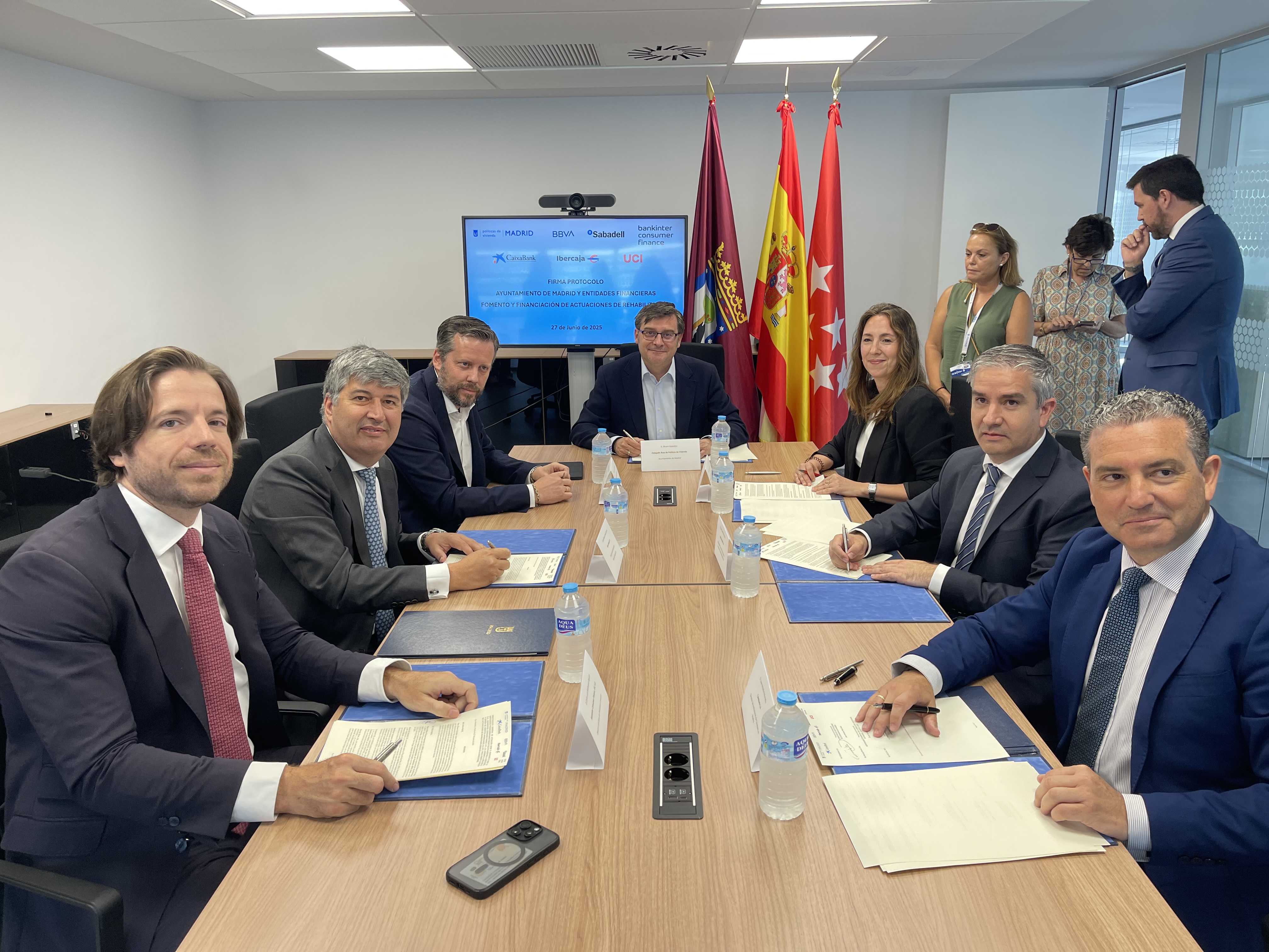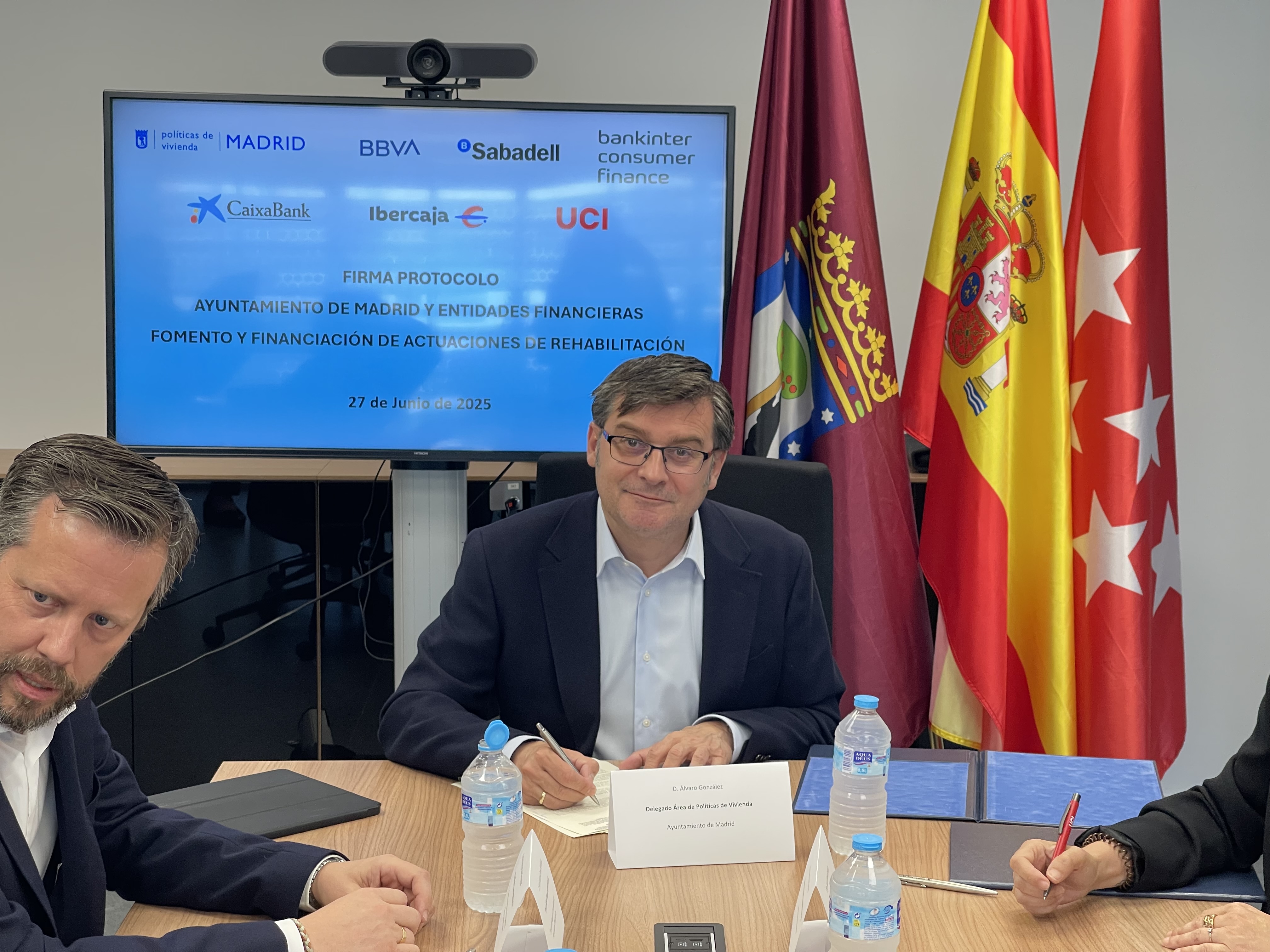 El Ayuntamiento de Madrid, a través del Área de Políticas de Vivienda, ha suscrito un protocolo con seis entidades bancarias -BBVA, Banco Sabadell, Bankinter Consumer Finance, CaixaBank, Ibercaja y Unión de Créditos Inmobiliarios- para facilitar el acceso a préstamos en condiciones muy ventajosas a los ciudadanos y comunidades de propietarios que quieran rehabilitar sus viviendas bajo el Plan Rehabilita 2025. Este acuerdo permitirá financiar la parte no cubierta por las subvenciones públicas, con tipos de interés por debajo del precio de mercado, facilitando así que más madrileños puedan acometer mejoras en sus hogares.