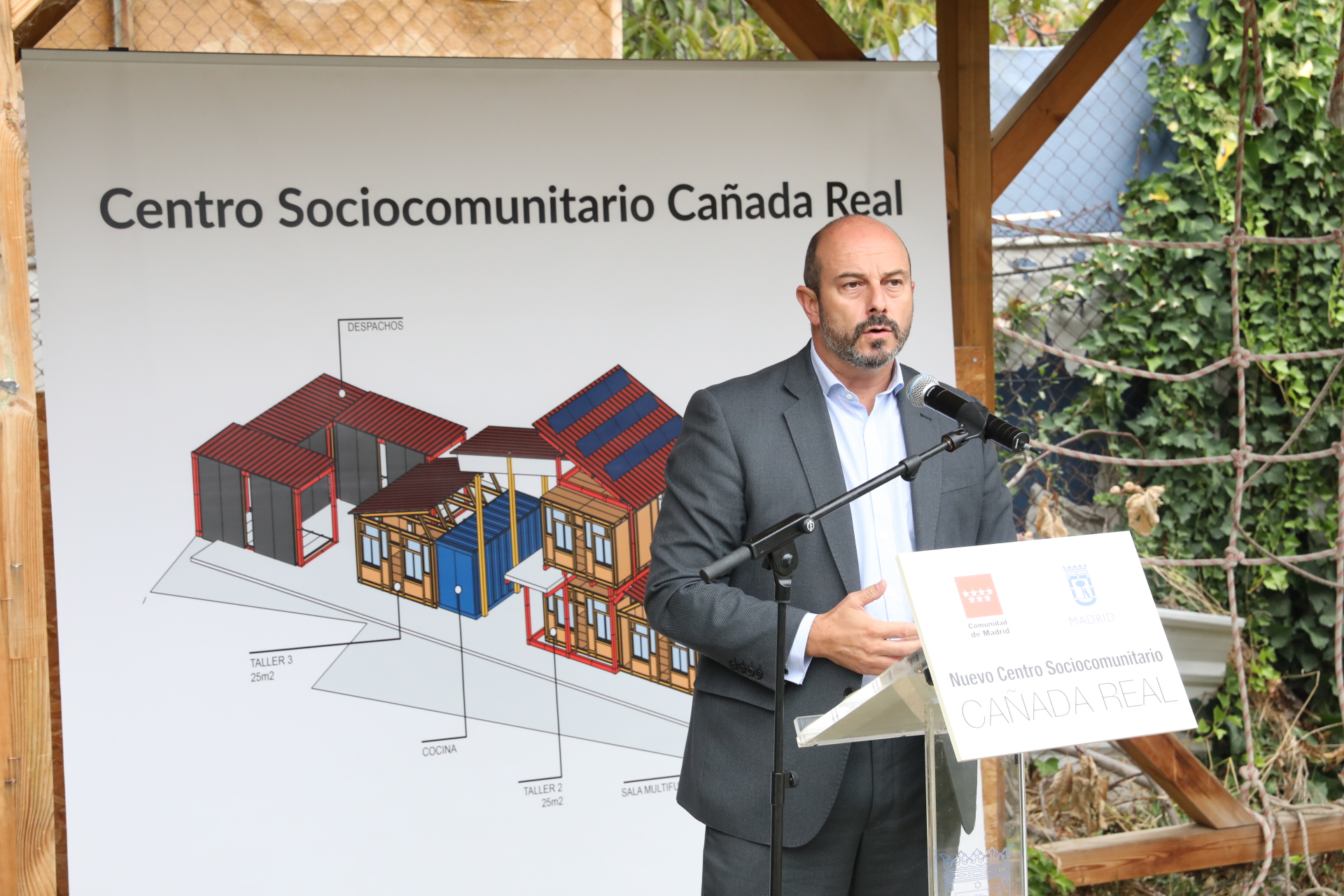 El centro se instalará en una parcela de 463 m2 en el sector V de la Cañada Real Galiana, en el distrito de Vicálvaro, lugar en el que ha tenido hoy lugar el encuentro en el que el delegado del Área de Coordinación Territorial y Cooperación Público-Social, Nacho Murgui, el concejal de la Junta Municipal del Distrito de Vicálvaro Carlos Sánchez Mato, el Comisionado para la Cañada Real, Pedro Navarrete y el equipo técnico ganador de la licitación (Recetas Urbanas) han presentado al vecindario y a las entidades sociales los planos del futuro centro, así como el proceso colaborativo con el que se pretende construir la edificación. Han asistido, asimismo, el consejero de Presidencia y Portavoz del Gobierno de la Comunidad de Madrid, Pedro Rollán y el Comisionado para la Cañada de la Comunidad, José Antonio Martínez Páramo.