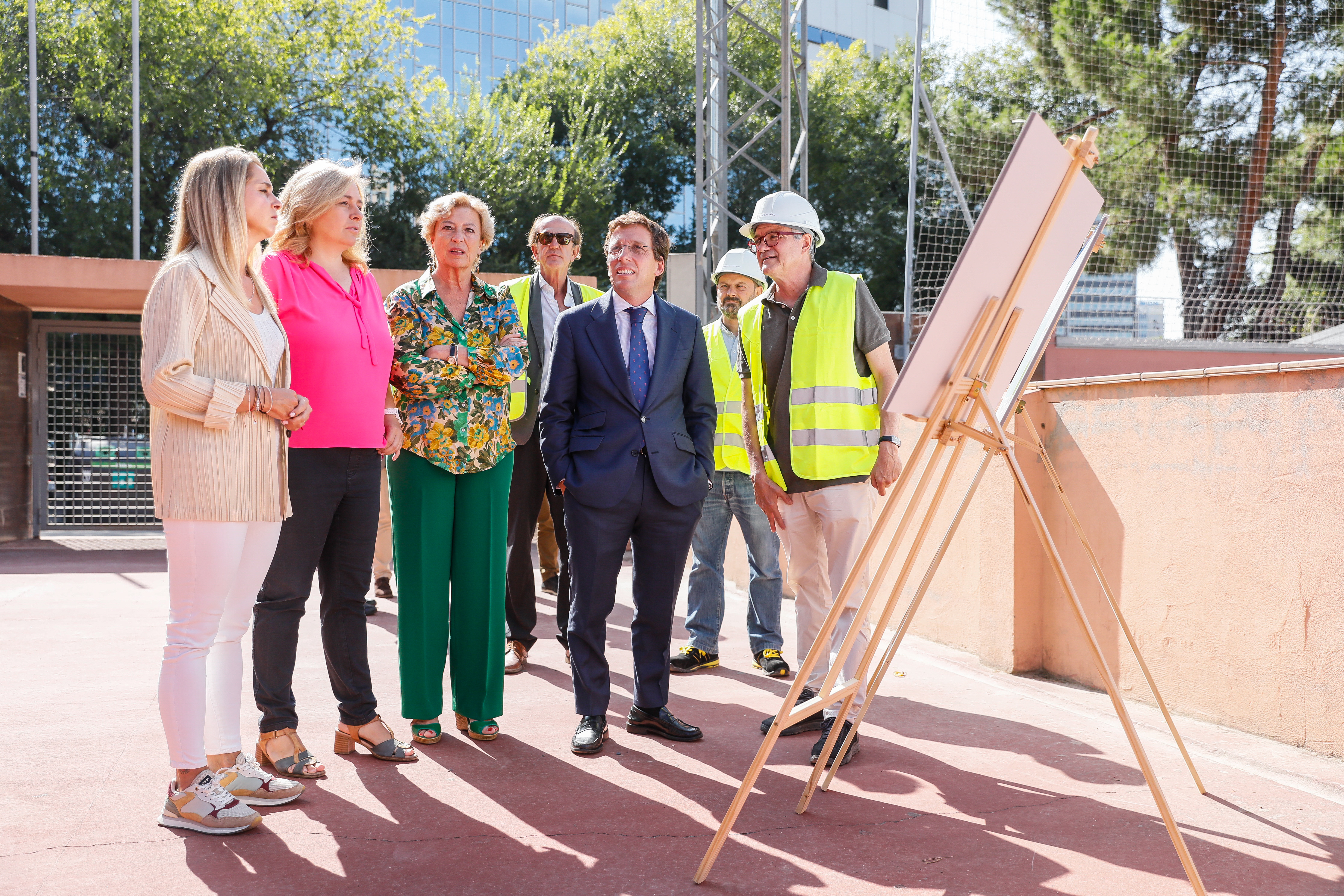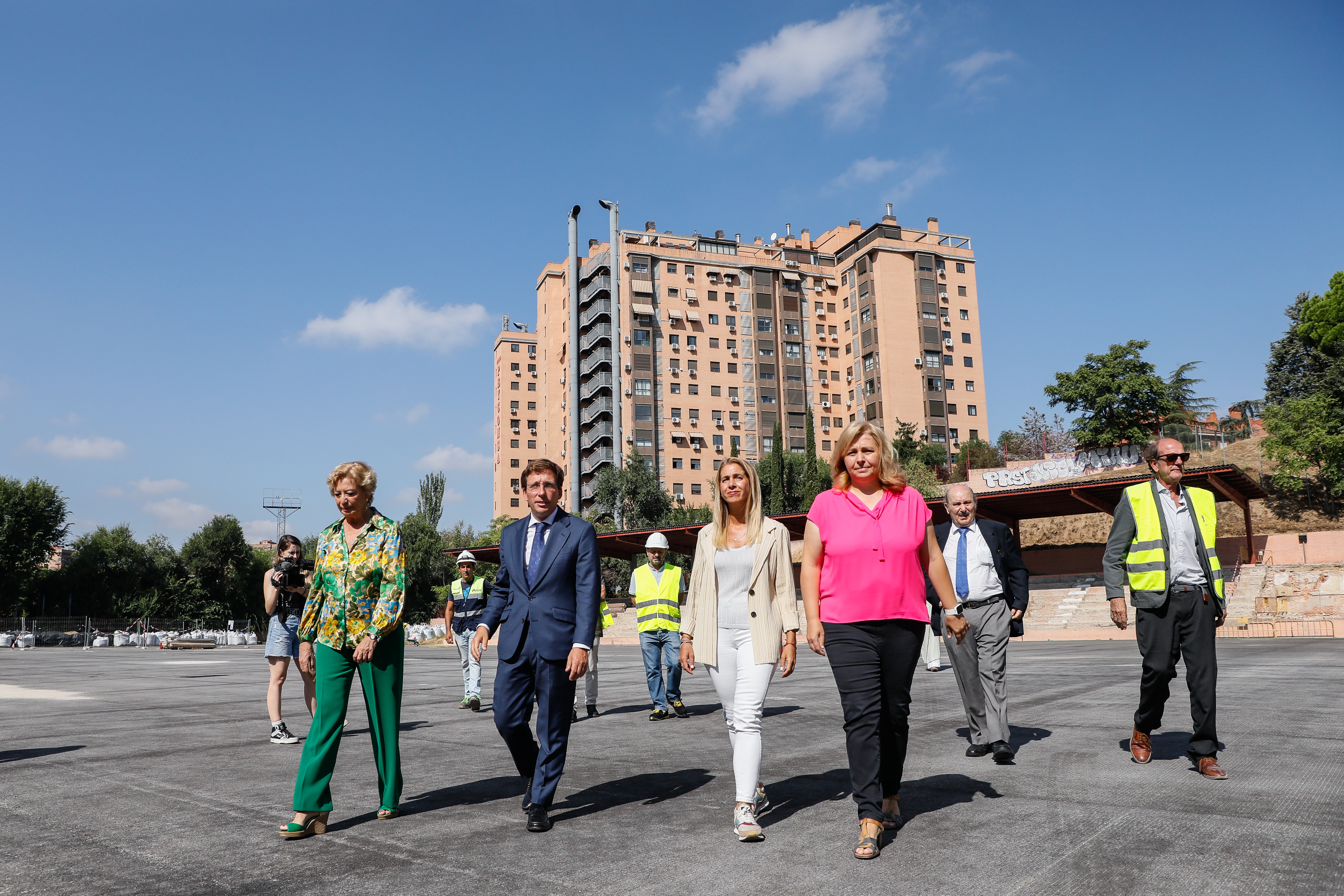 El alcalde de Madrid, José Luis Martínez-Almeida, acompañado de la vicealcaldesa y portavoz municipal, Inma Sanz; la delegada de Obras y Equipamientos, Paloma García Romero, y la concejala de Ciudad Lineal, Nadia Álvarez, ha visitado esta mañana el campo de fútbol García de la Mata, que está siendo objeto de una reforma integral cuyos trabajos han comenzado este verano. Esta instalación, tras su reciente reversión al Ayuntamiento, está integrada en el Centro Deportivo Municipal San Juan Bautista.