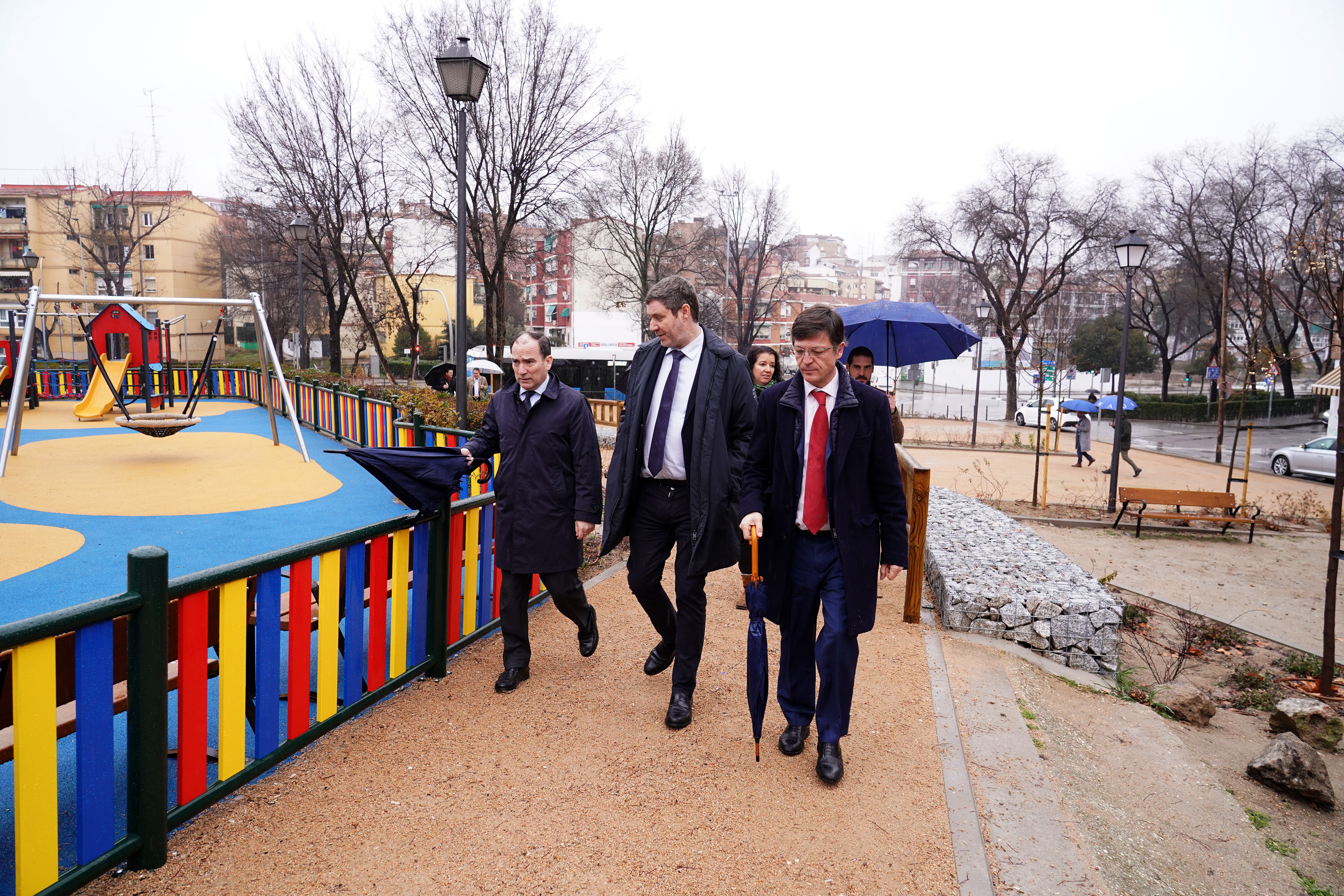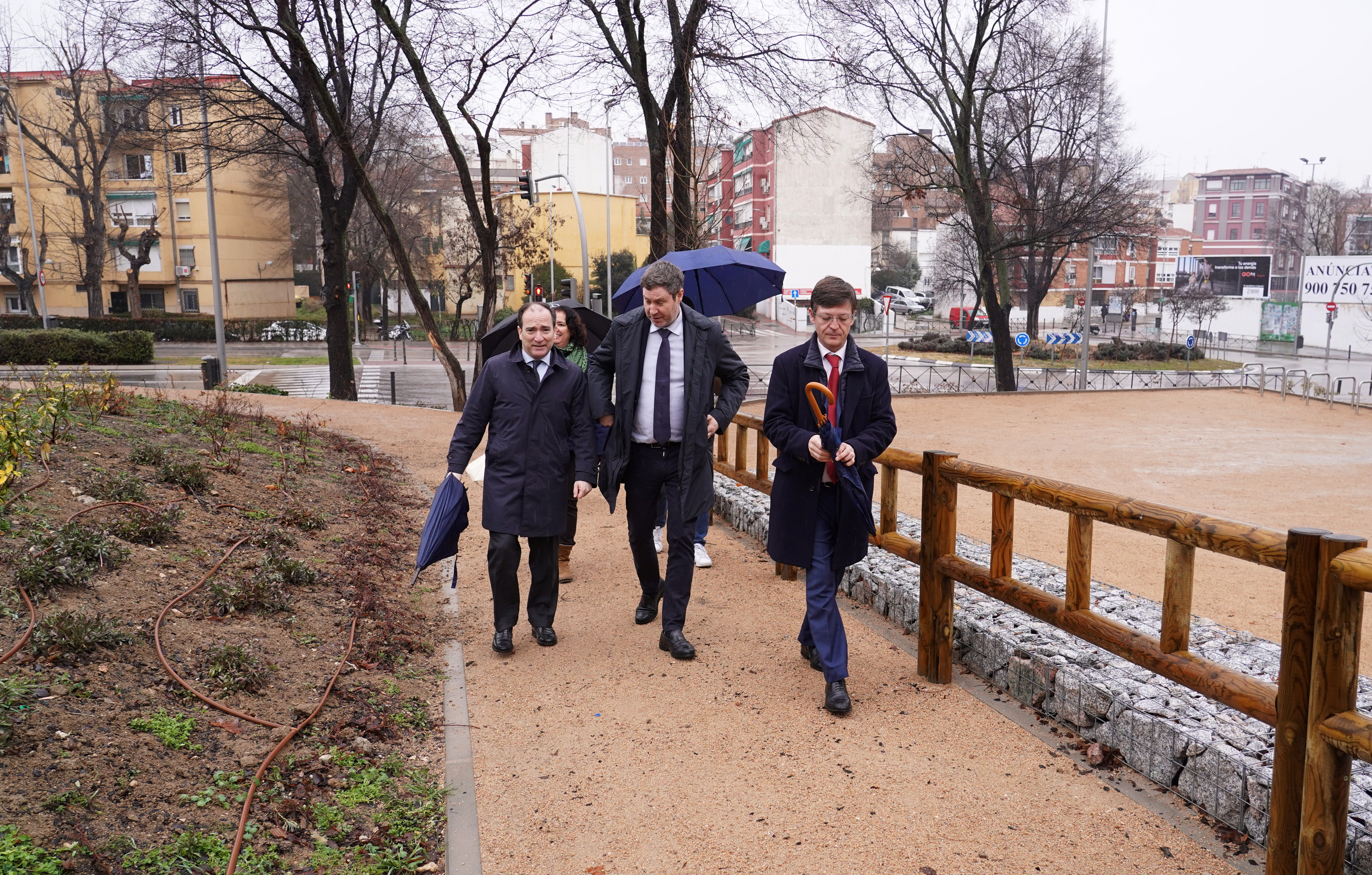 El delegado de Urbanismo, Medio Ambiente y Movilidad, Borja Carabante, junto al concejal delegado de Limpieza y Zonas Verdes, José Antonio Martínez Páramo, y el concejal de Latina, Alberto González, ha visitado esta mañana las obras ejecutadas, destacando el compromiso del Ayuntamiento con el medioambiente y su apuesta por un futuro más verde y accesible en la ciudad de Madrid.