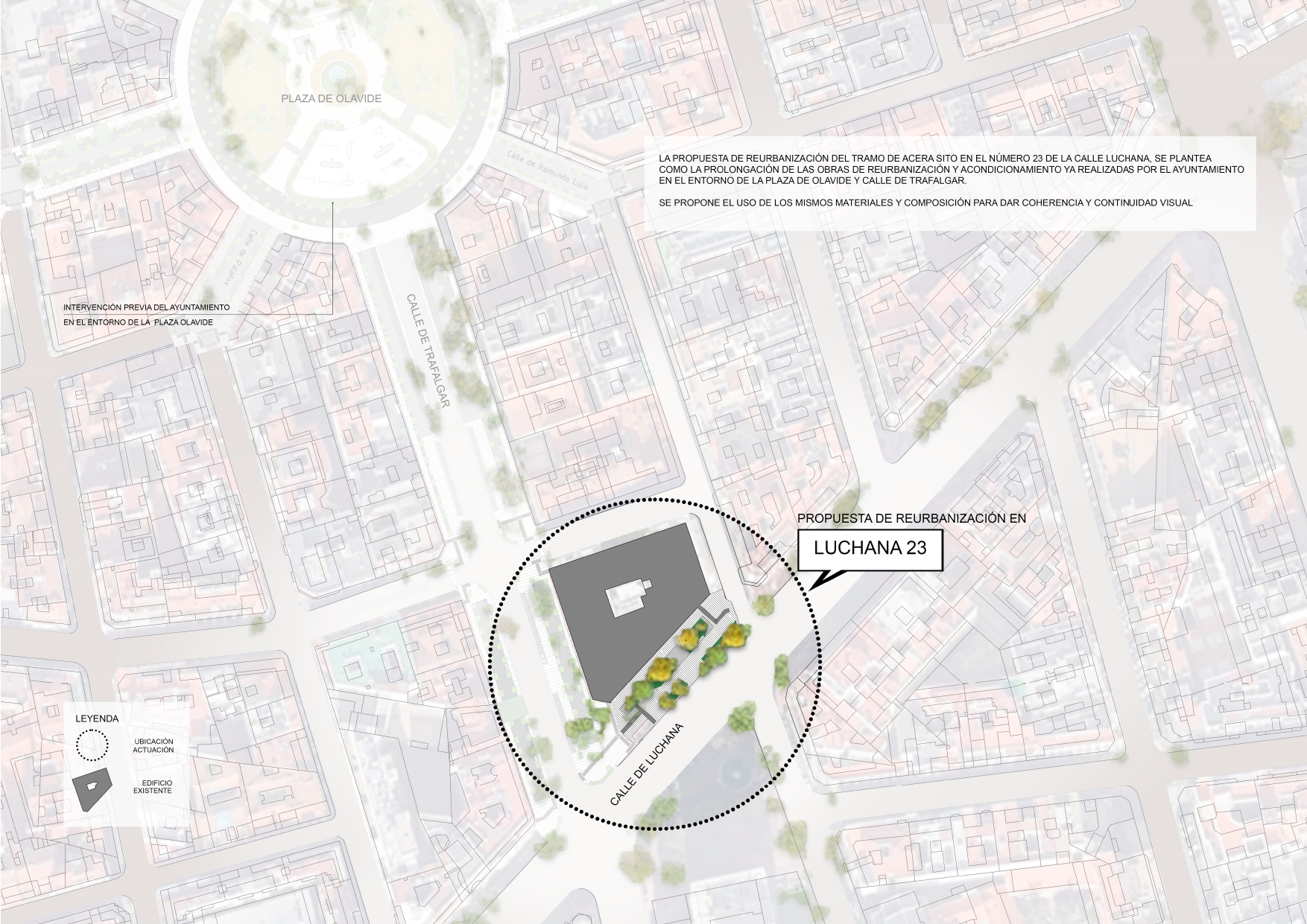 Asimismo, el Consistorio también ha firmado otro convenio con GMP Property Socimi para reurbanizar el tramo de acera de la calle de Luchana entre las calles de Trafalgar y Garcilaso, en Chamberí. El proyecto, con un presupuesto de 159.000 euros, también será financiado y ejecutado por la entidad privada y supervisado por el Ayuntamiento y consistirá en la adecuación de este espacio siguiendo los parámetros de la reciente remodelación de la plaza de Olavide y su entorno, para lo que se utilizarán los mismos materiales y se seguirá la misma estética.