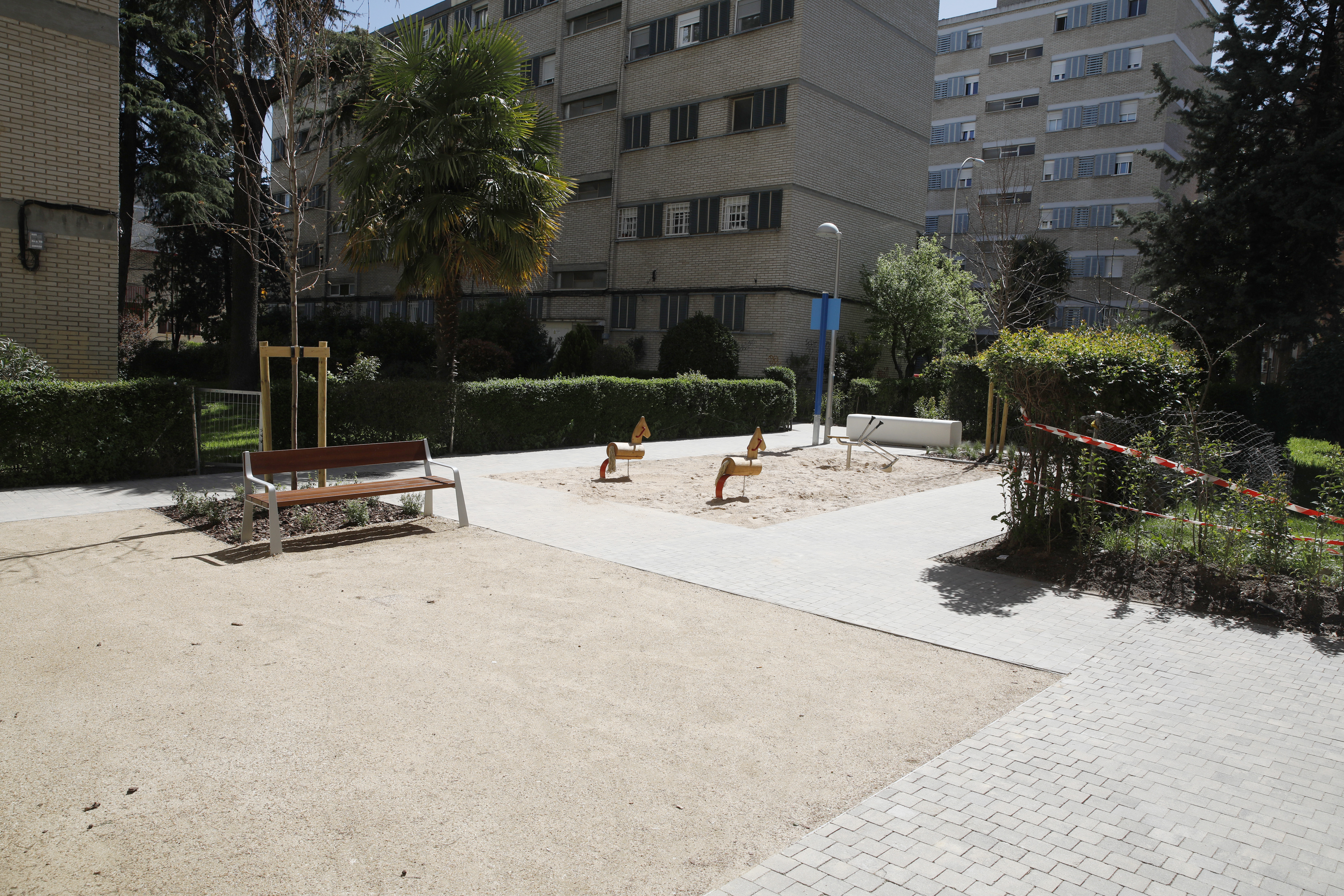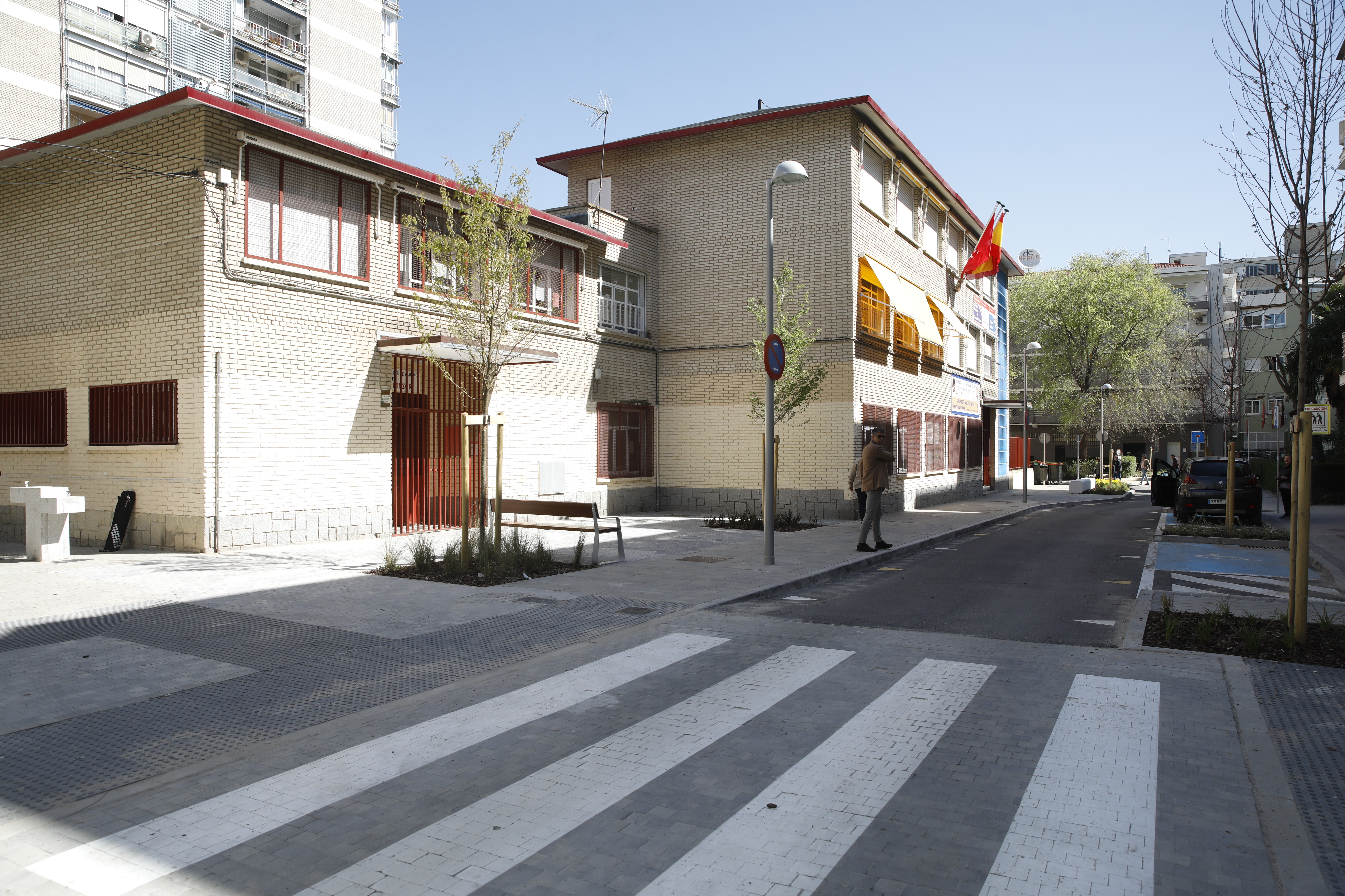 También se ha actuado sobre distintos espacios interbloque que forman parte del recorrido que realizan los alumnos entre los dos centros para renovar la pavimentación y la iluminación, interviniendo además en dos plazoletas que conectan con el acceso al centro de Primaria. En ellas, se han creado parterres, se ha plantado nuevo arbolado y se han colocado bancos y juegos infantiles. Se ha actuado, además, sobre el espacio interbloque de entrada al Centro Municipal de Mayores Campamento, generando un área estancial accesible con nuevos parterres, arbolado y mobiliario que puedan disfrutar los usuarios. Por último, se ha añadido un nuevo paso peatonal en la calle de Villaviciosa para poder acceder de manera segura a la parada del autobús.
