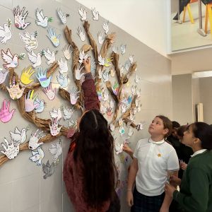Celebrando la semana de la Educación AmbientalPara celebrar la semana de la educación ambiental del 26 al 30 de enero propuesta por Educar hoy por un Madrid más sostenible, en el colegio hemos realizado dos de las actividades sugeridas por este Programa, "el árbol de la paz" y "el almuerzo saludable". Ambas actividades han sido muy bien acogidas por las profesoras, las alumnas y las familias. El árbol ha sido una breve actividad de aprendizaje manipulativo que nos ha ayudado a visualizar que la paz es un gran bien que forjamos entre todas las personas. Para el reto del almuerzo sin residuos hemos hecho un registro semanal en primaria del tipo de alimento y envoltorio para luego debatir sobre los residuos de envases y pensar en alternativas.