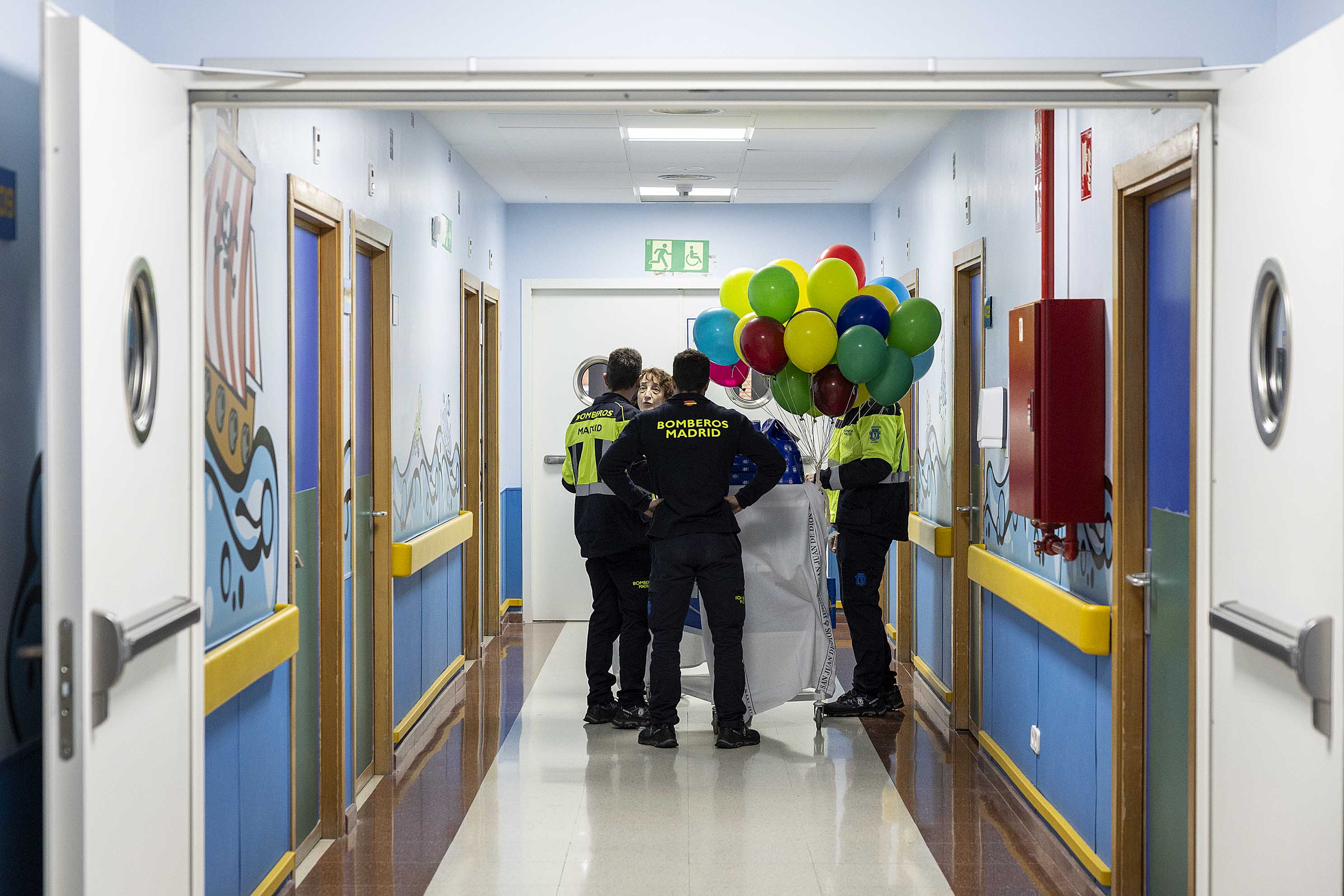 Sanz, acompañada por la concejala del distrito de Chamartín, Yolanda Estrada, ha participado en el tradicional reparto de juguetes entre los niños hospitalizados, junto a los bomberos municipales.