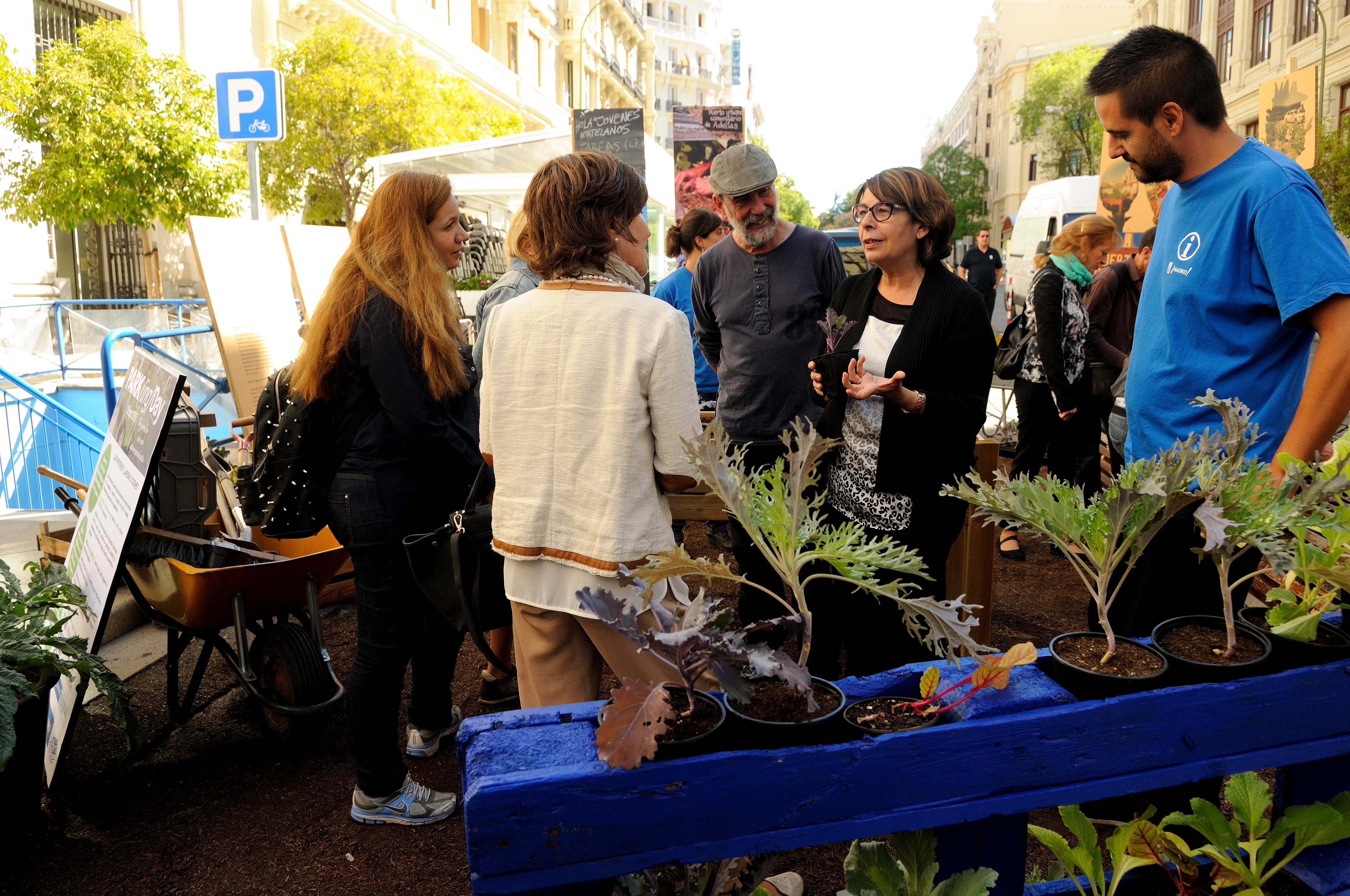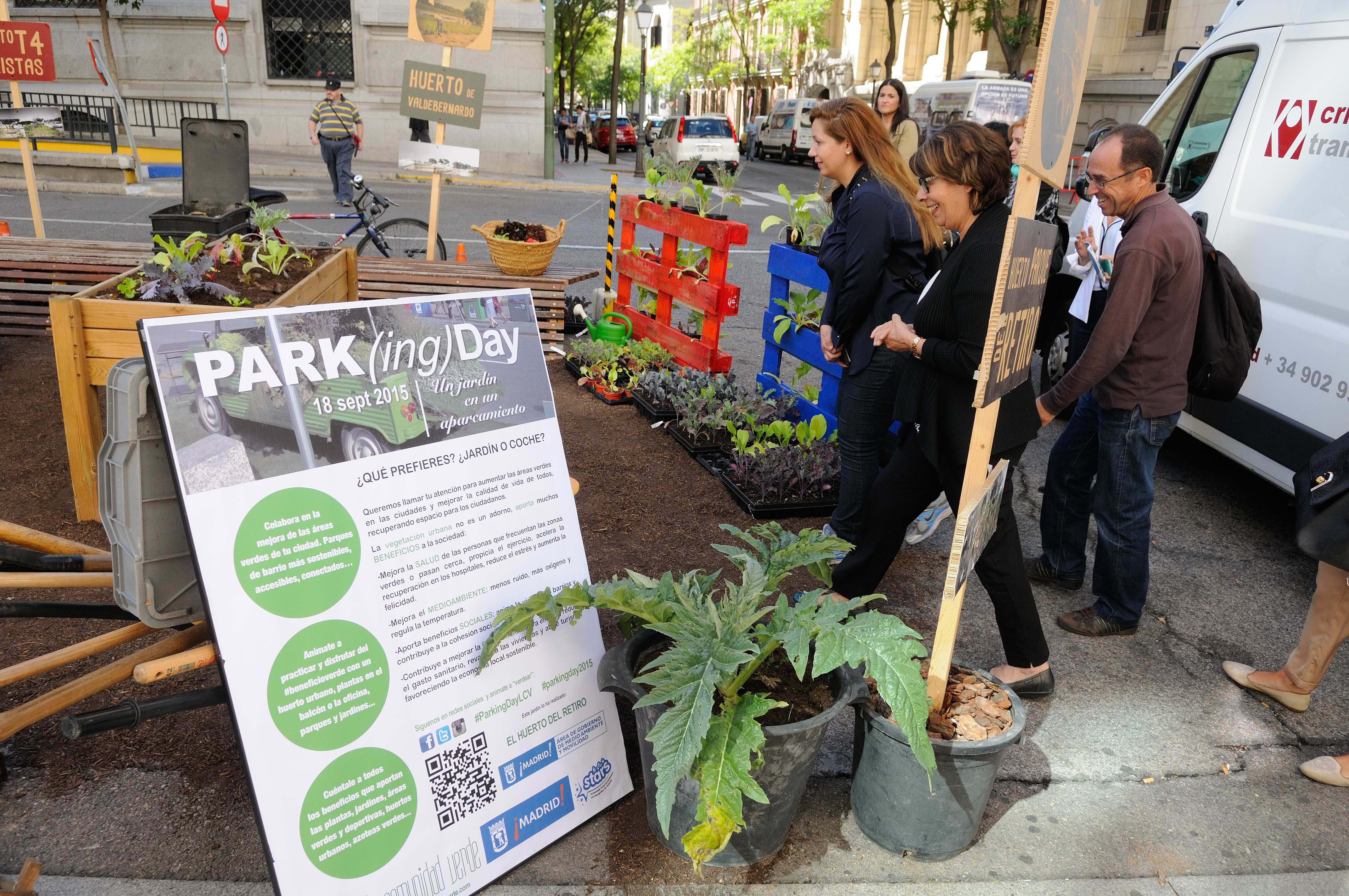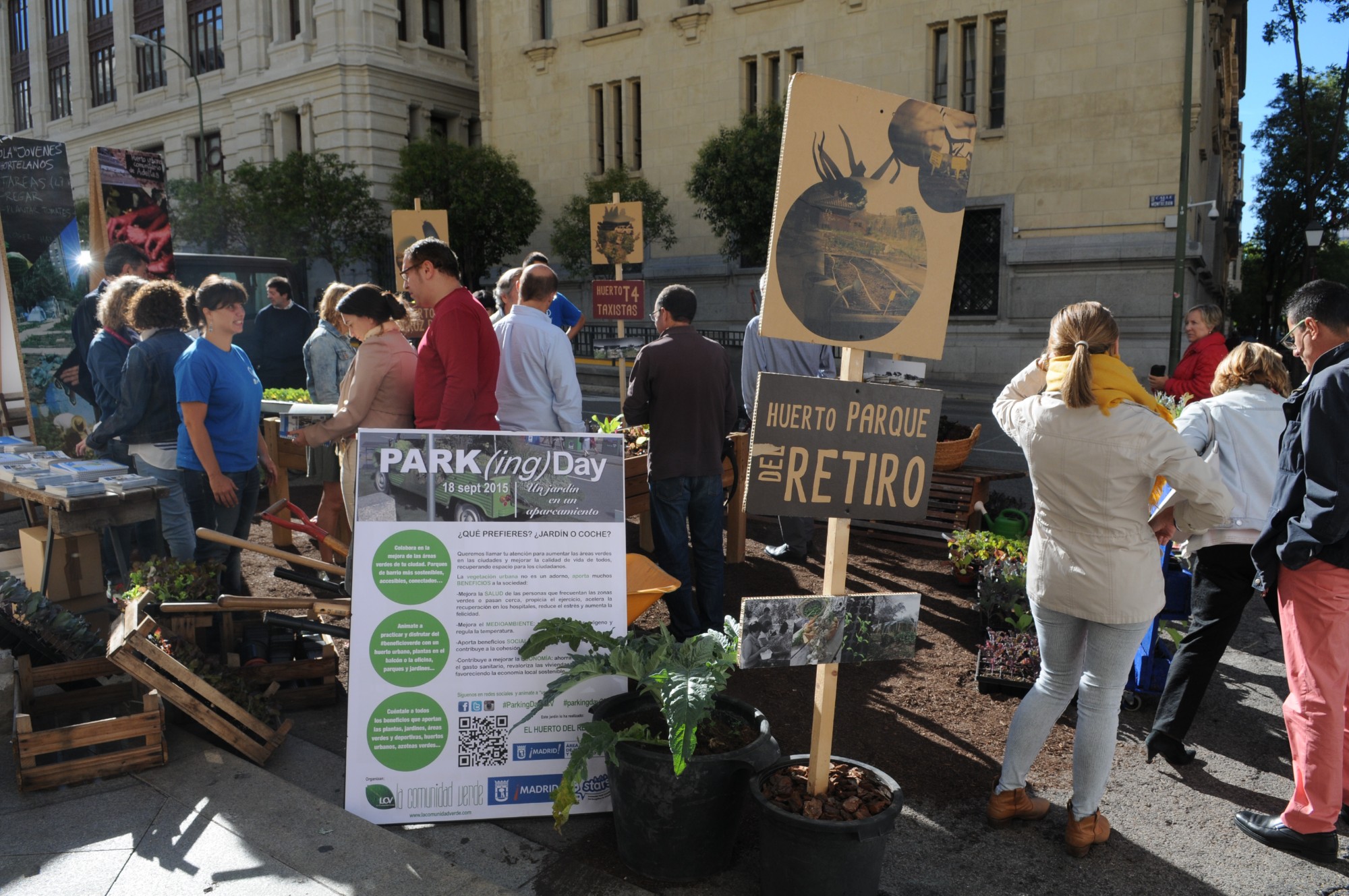 El Centro de Educación Ambiental "Huerto del Retiro" ha sacado hoy sus cultivos a la calle, en concreto a las puertas del Ayuntamiento, donde ha ocupado una plaza de aparcamiento de un coche municipal, en la calle Montalbán. La iniciativa se enmarca dentro del  "Parking Day", un evento a nivel mundial que reivindica para las personas los espacios destinados al automóvil, y al que se ha sumado, por tercer año consecutivo, el Ayuntamiento de Madrid.