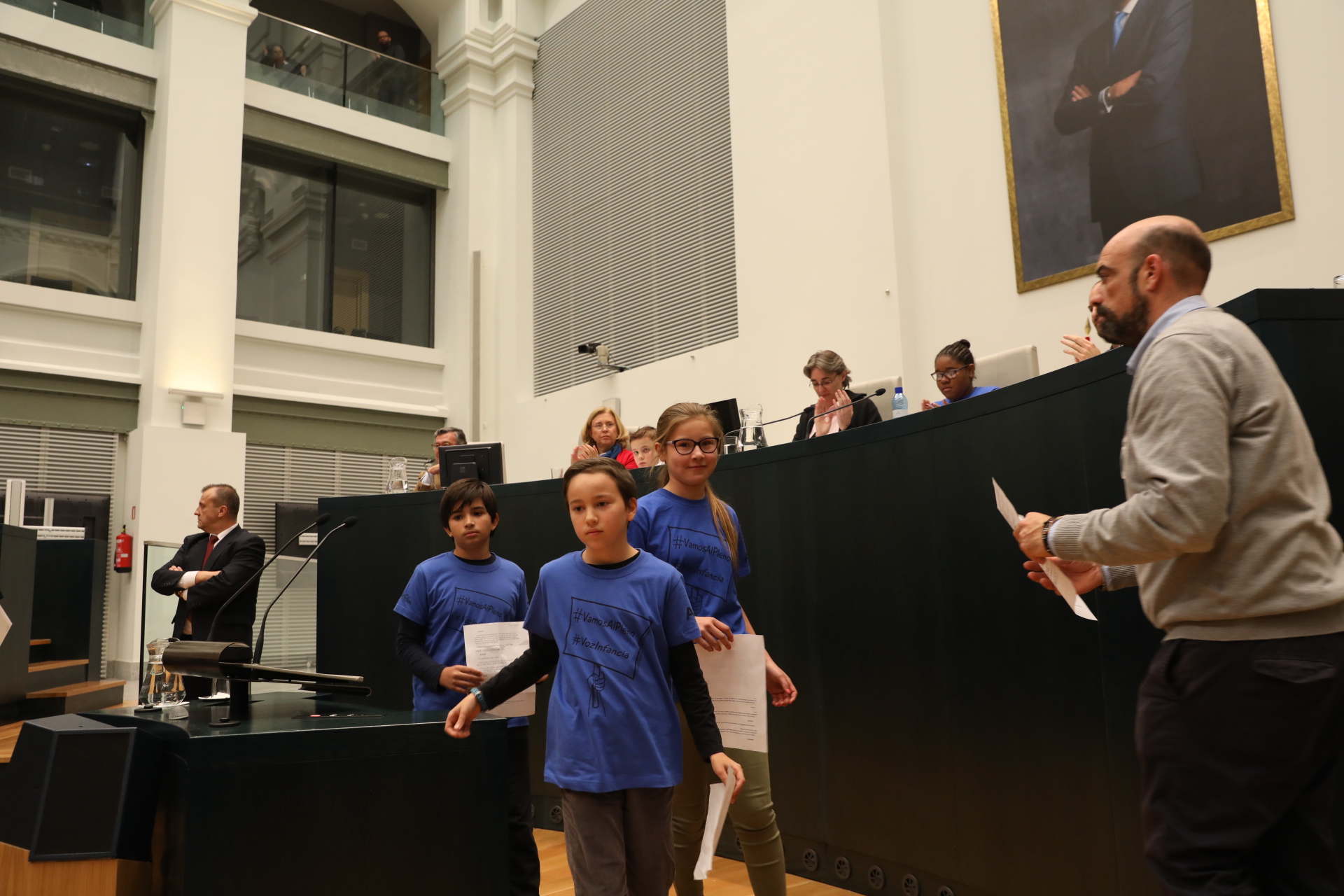 El Ayuntamiento de Madrid ha celebrado esta tarde una nueva edición del Pleno Infantil. Marta Higueras, delegada del Área de Equidad, Derechos Sociales y Empleo, ha presidido esta sesión, con motivo del Día Universal de la Infancia. Representantes de todos los grupos políticos municipales han participado en un pleno que, de forma clara y contundente, supone un reconocimiento a todos los niños, niñas y adolescentes del mundo y que muestra el compromiso para que sean tomados en cuenta en las políticas públicas, al tiempo que se pretende fomentar su participación activa en las decisiones que les afectan.